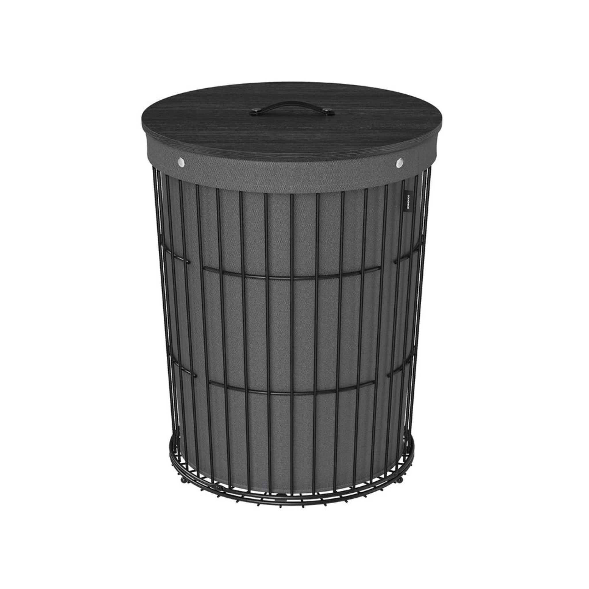 - 【VERSATILE USES】This laundry hamper also doubles as a side table or nightstand. Its round shape and slate-gray color blend seamlessly into any room, from the living room to the bedroom, complementing any home decor