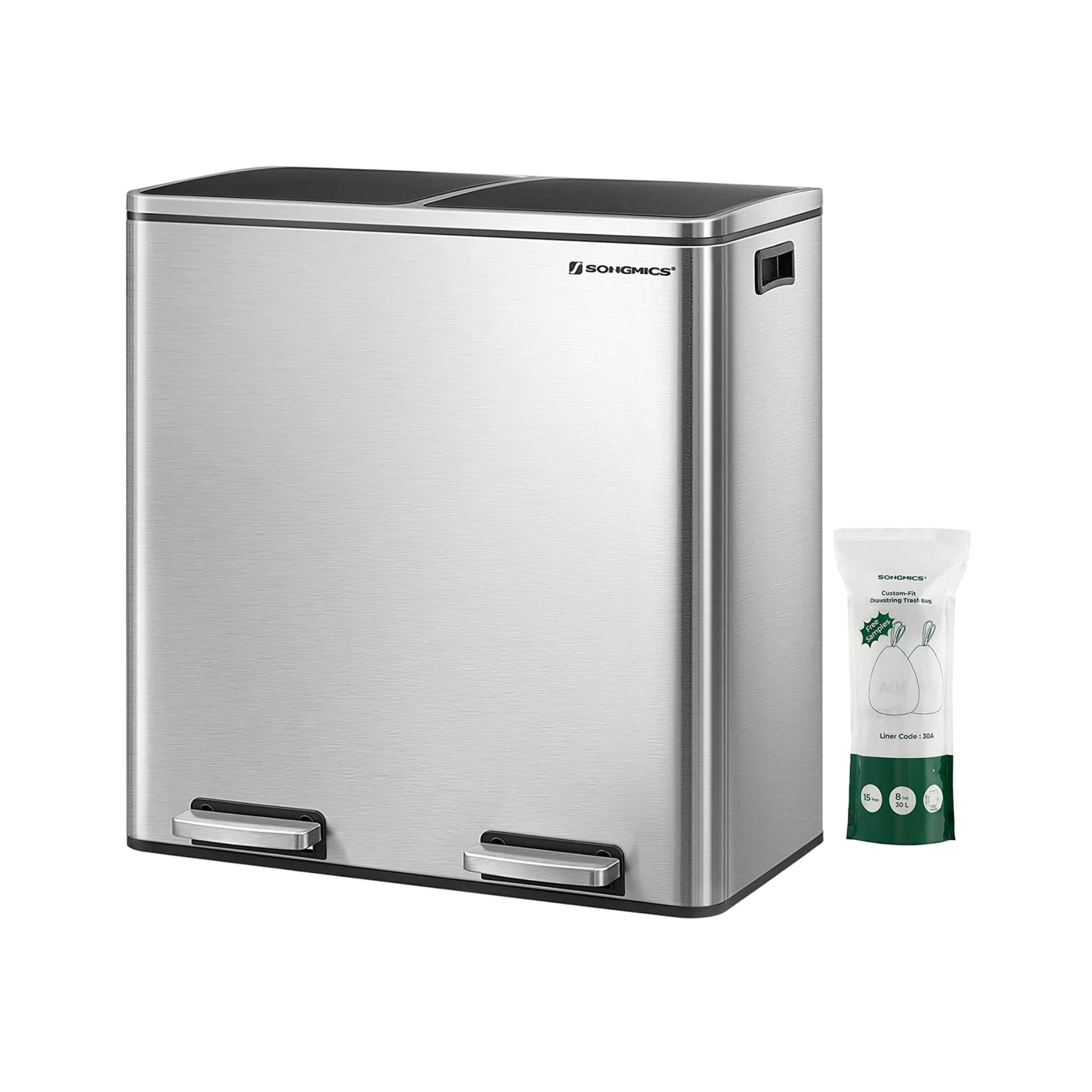 - [Easier sorting] This 2 compartment waste bin makes recycling easier. With its pedals you won't even have to touch it to sort your waste