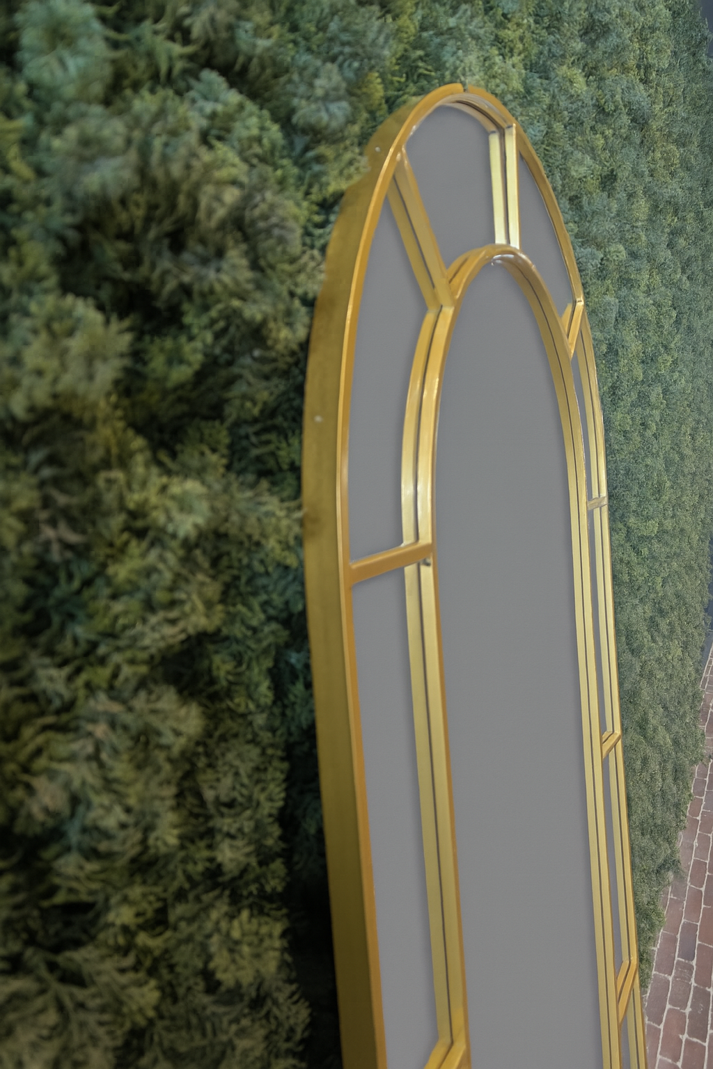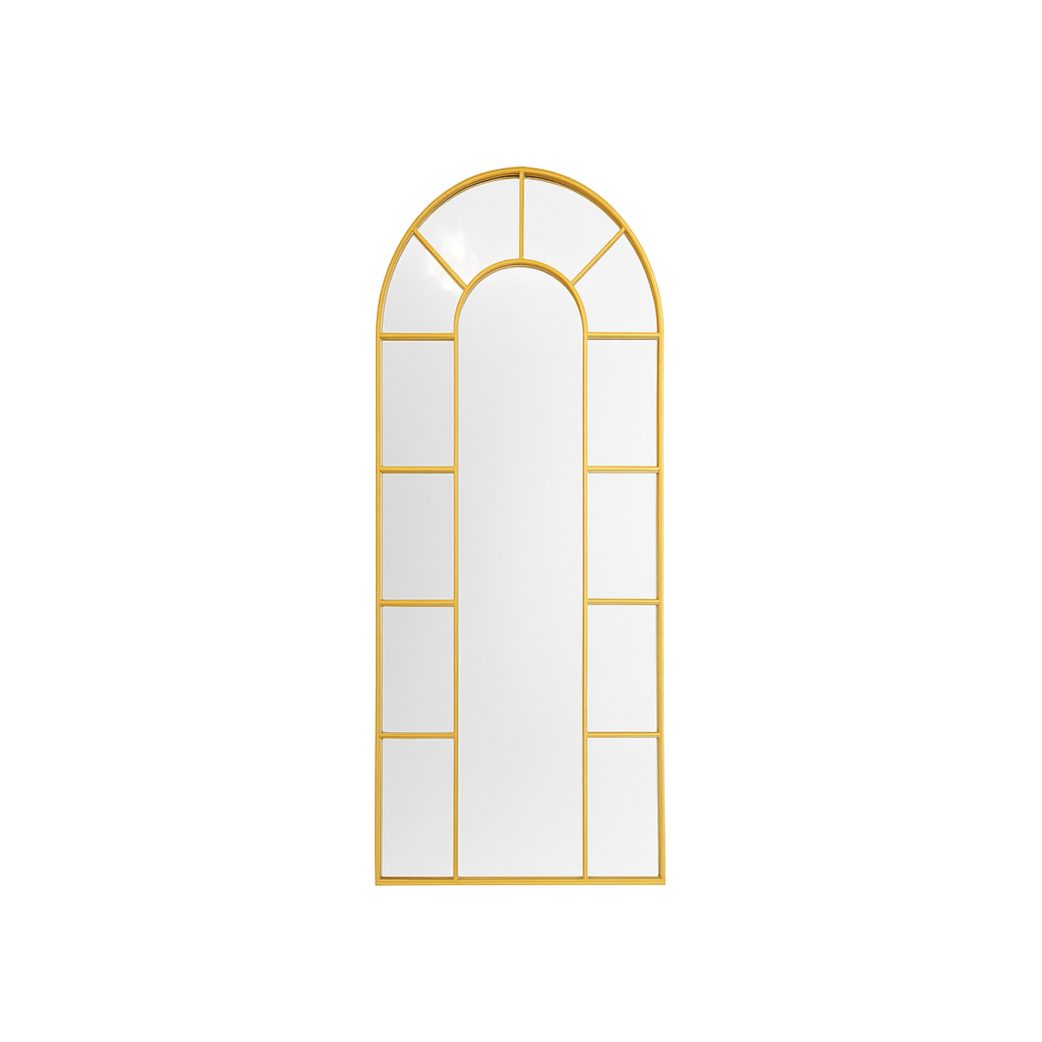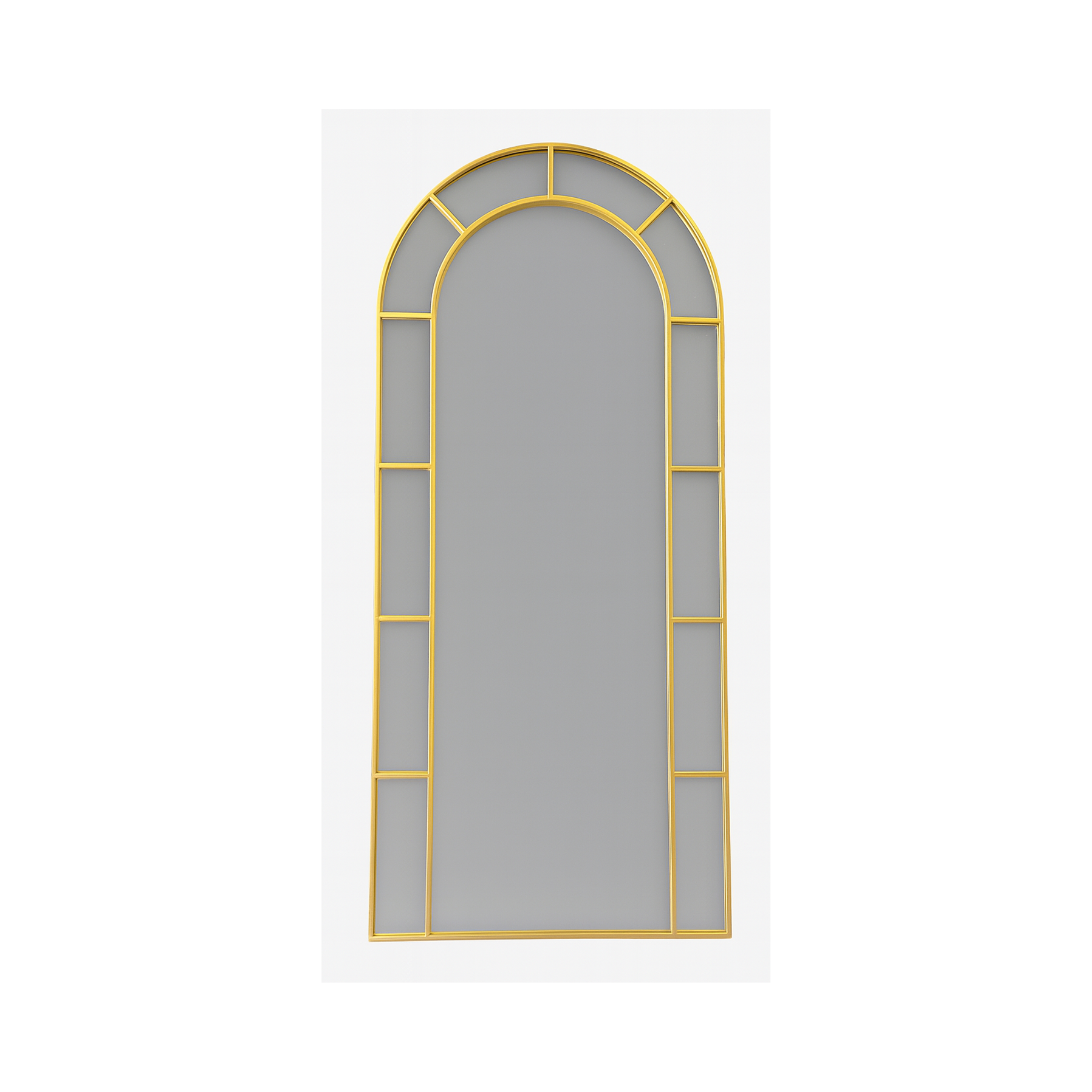 Bring timeless sophistication and architectural charm to your space with this Arched Windowpane Mirror, sized at 180x80 cm. Featuring a luxurious gold metal frame and a cathedral-style arched top, this mirror is divided into symmetrical segments, mimicking the elegance of vintage window designs.