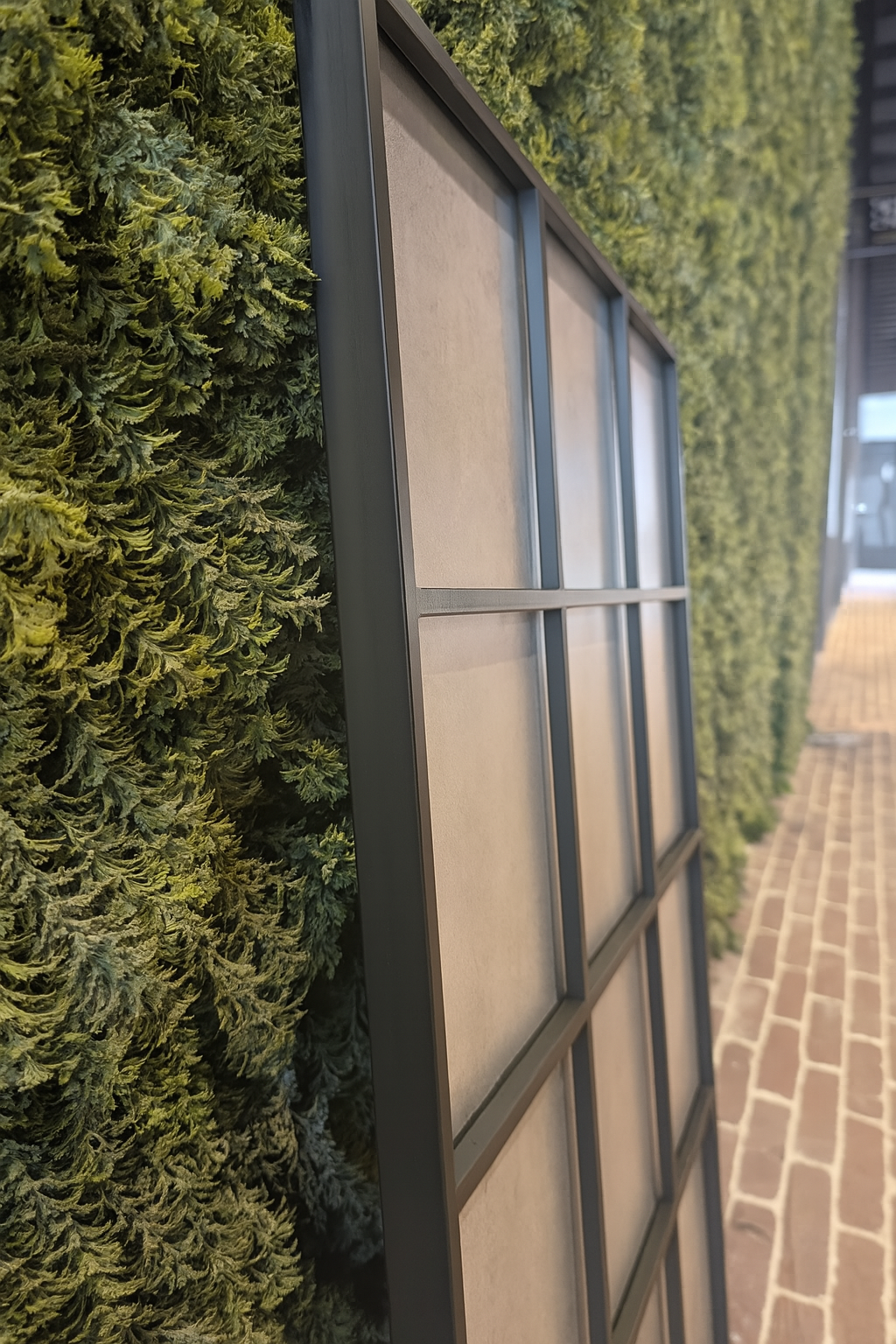 Its minimalistic yet bold look makes it ideal for entryways, living rooms, bedrooms, or even as a statement piece in office or retail spaces. The grid pattern adds architectural interest, giving the illusion of a window and enhancing natural light flow in the room.