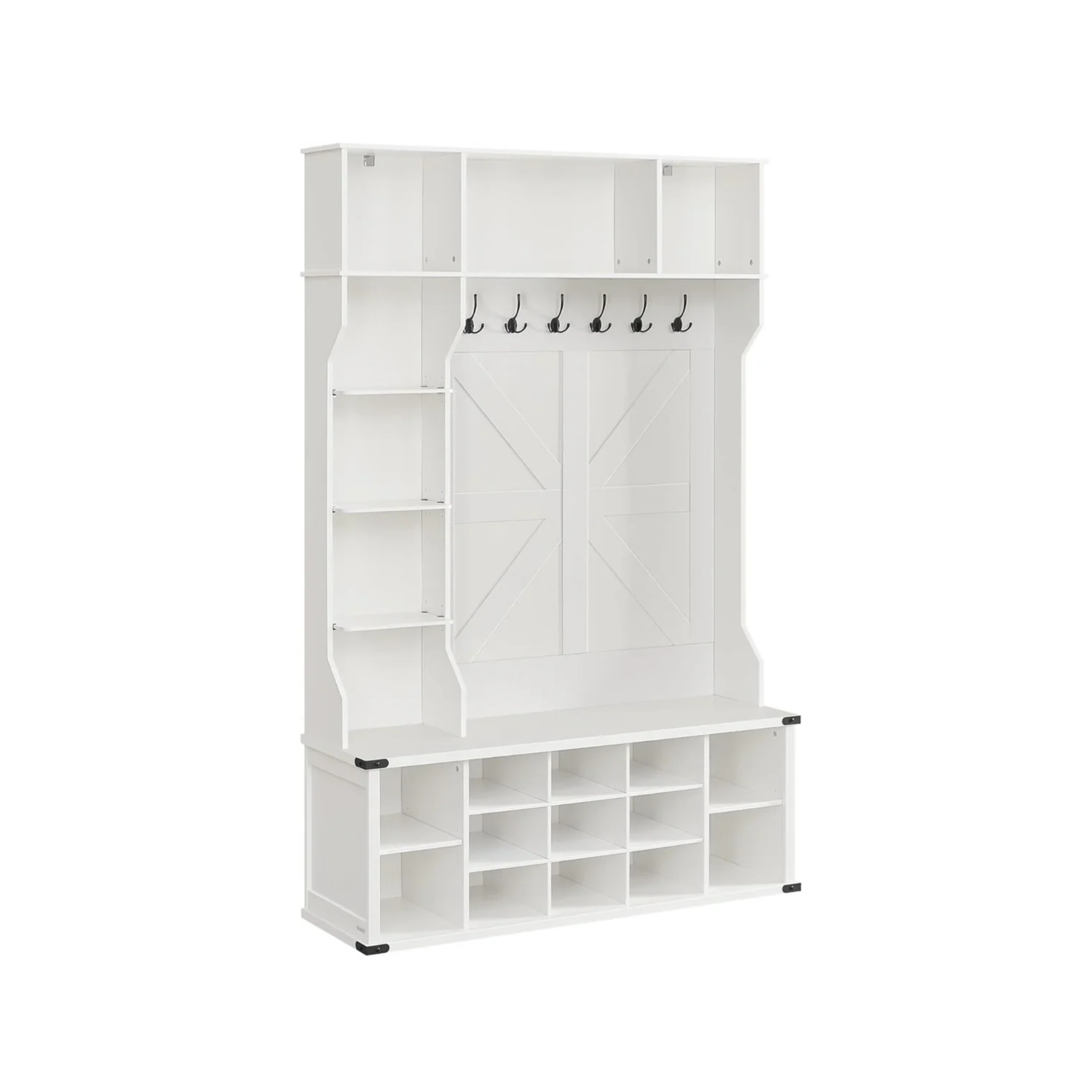 4-in-1 design: the versatile clothes rack combines 6 triple hooks, storage shelf, bench and shoe rack (for 13 shoes) to make optimal use of space and create a tidy entrance area