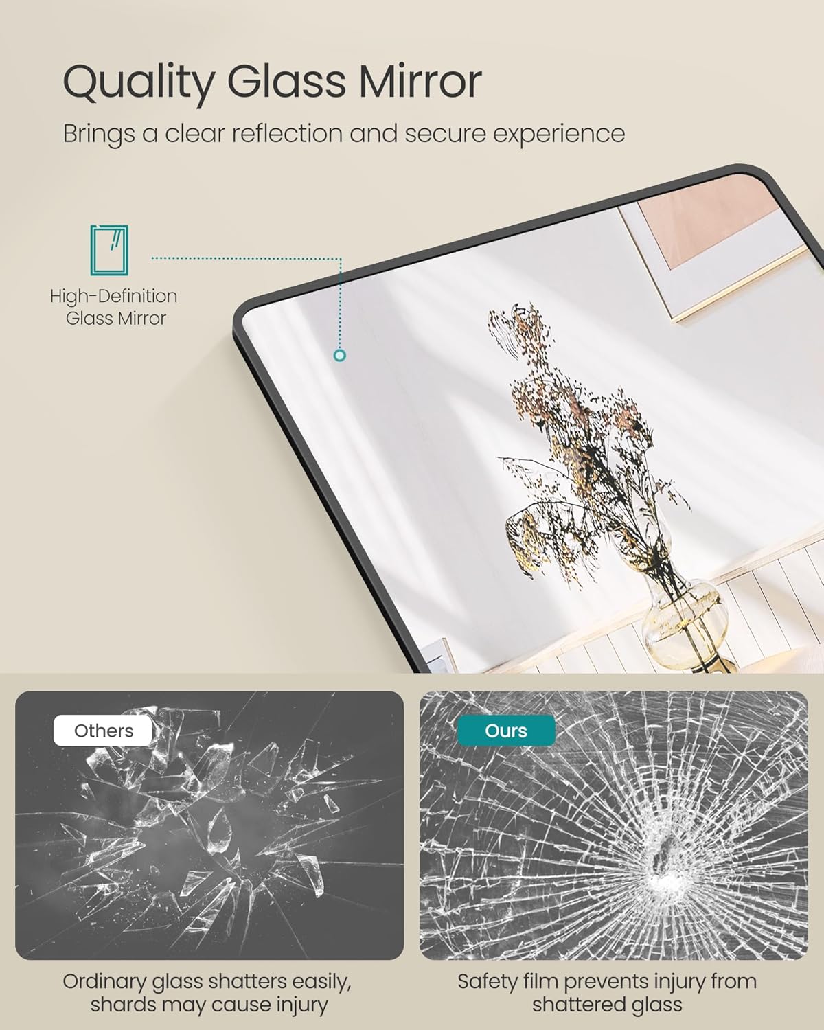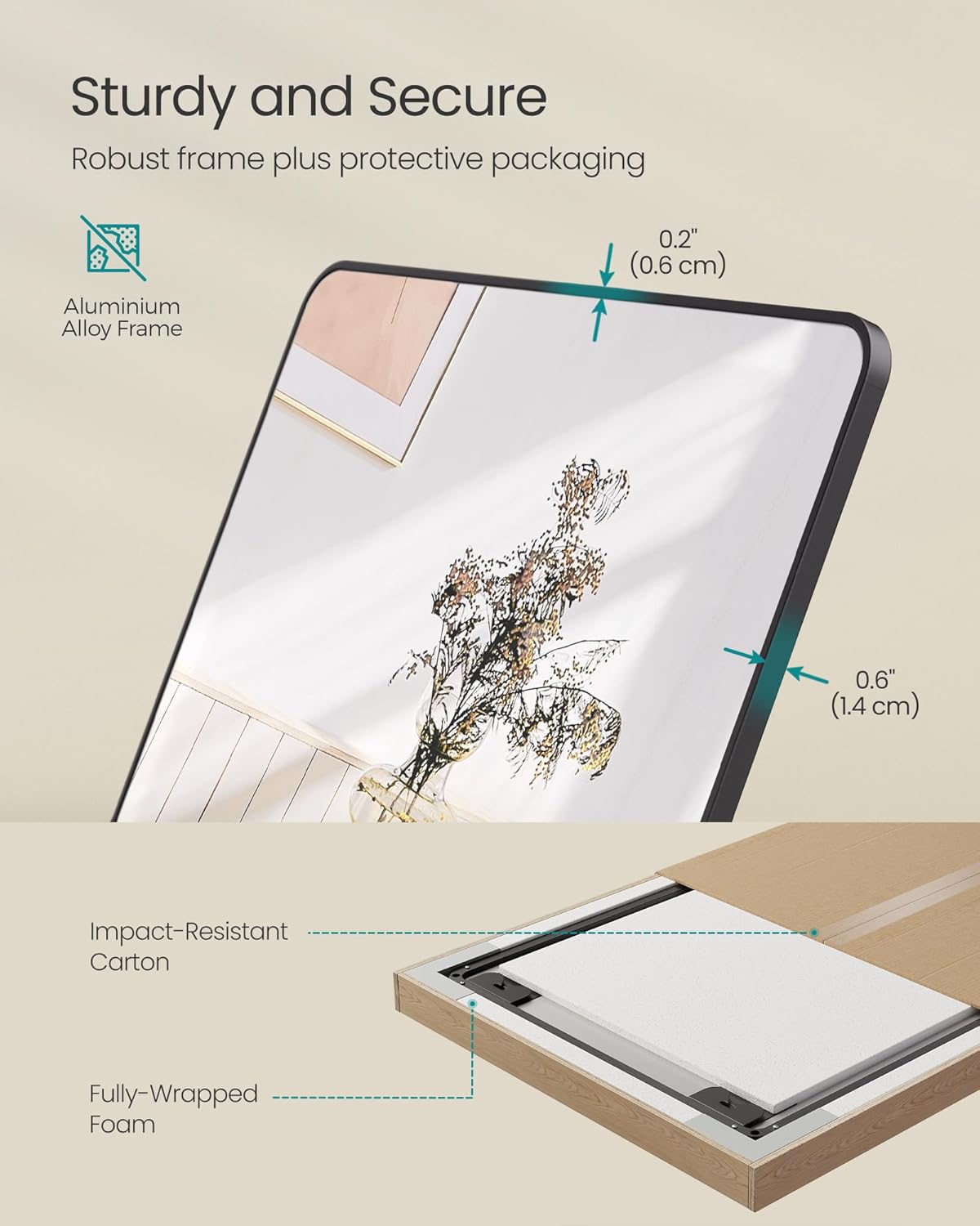 【STRONG & SECURE】Crafted from high-strength tempered glass with a safety film, the floor mirror minimises shattering risks, ensuring your safety even in the rare event of breakage