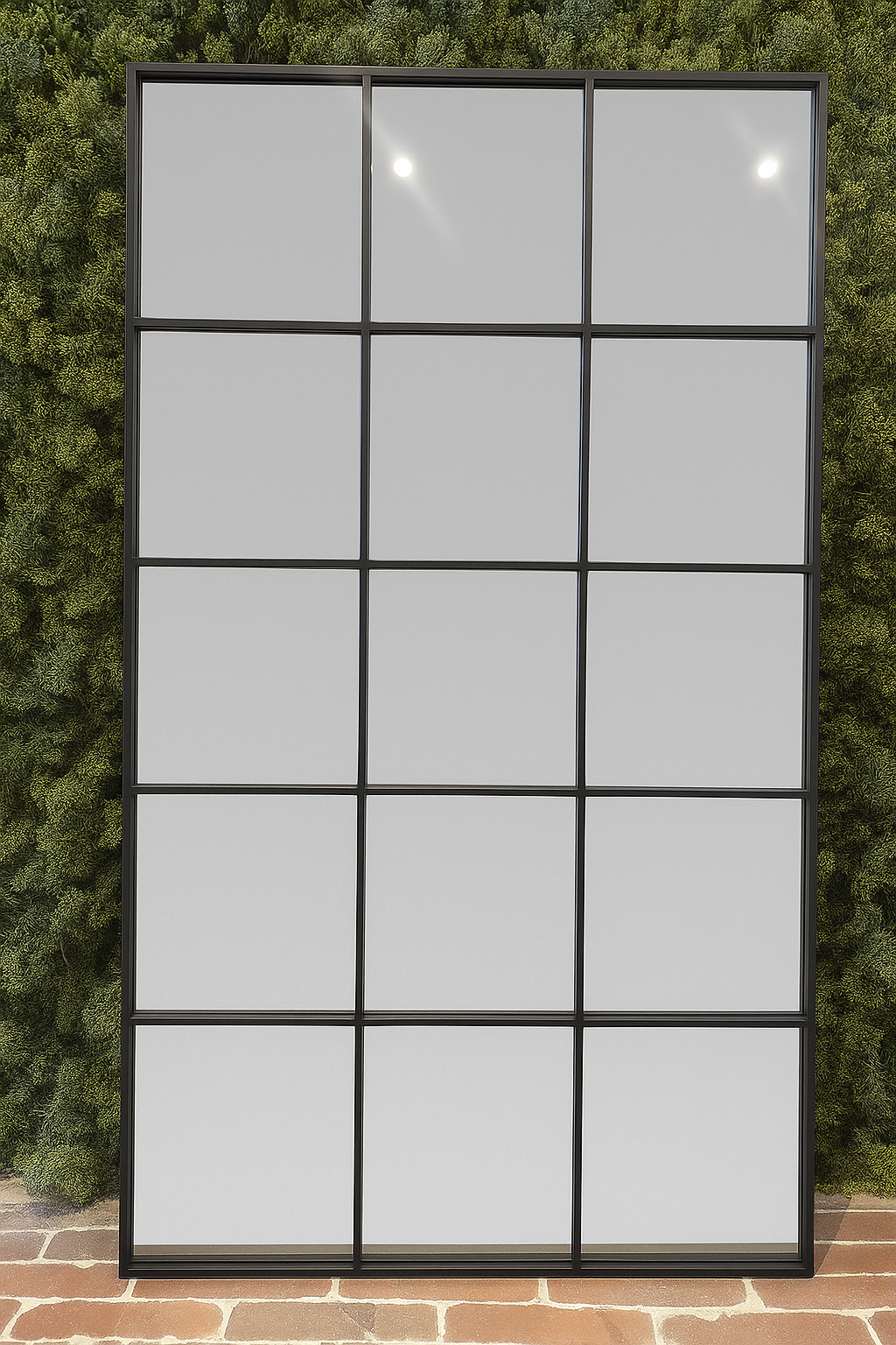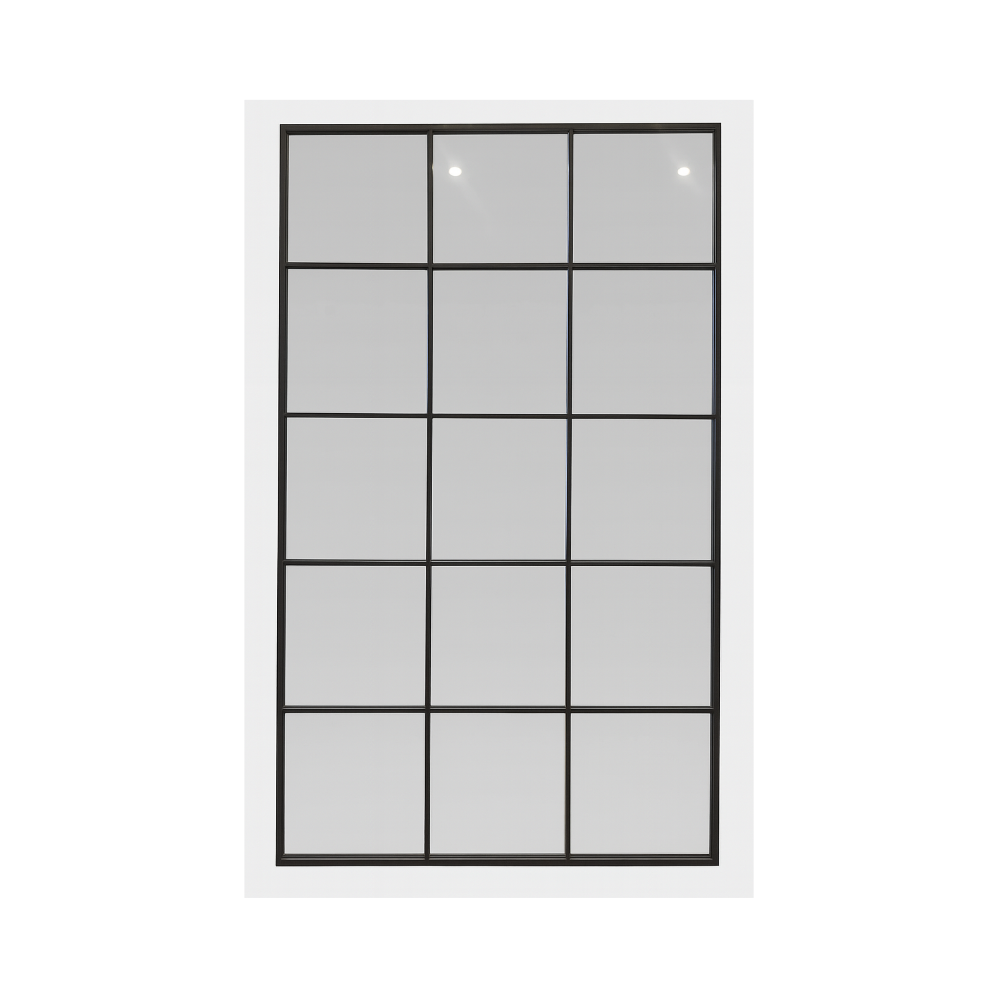 Add a bold and sophisticated touch to your interior with this large industrial-style grid mirror. Featuring a sleek black metal frame with a 5x3 pane design, this 180 x 80 cm mirror brings structure, symmetry, and modern elegance to any room. Ideal for enhancing natural light and adding visual depth, it works beautifully in lofts, studios, living rooms, or entryways. Designed for wall mounting or leaning, this mirror is both functional and decorative.