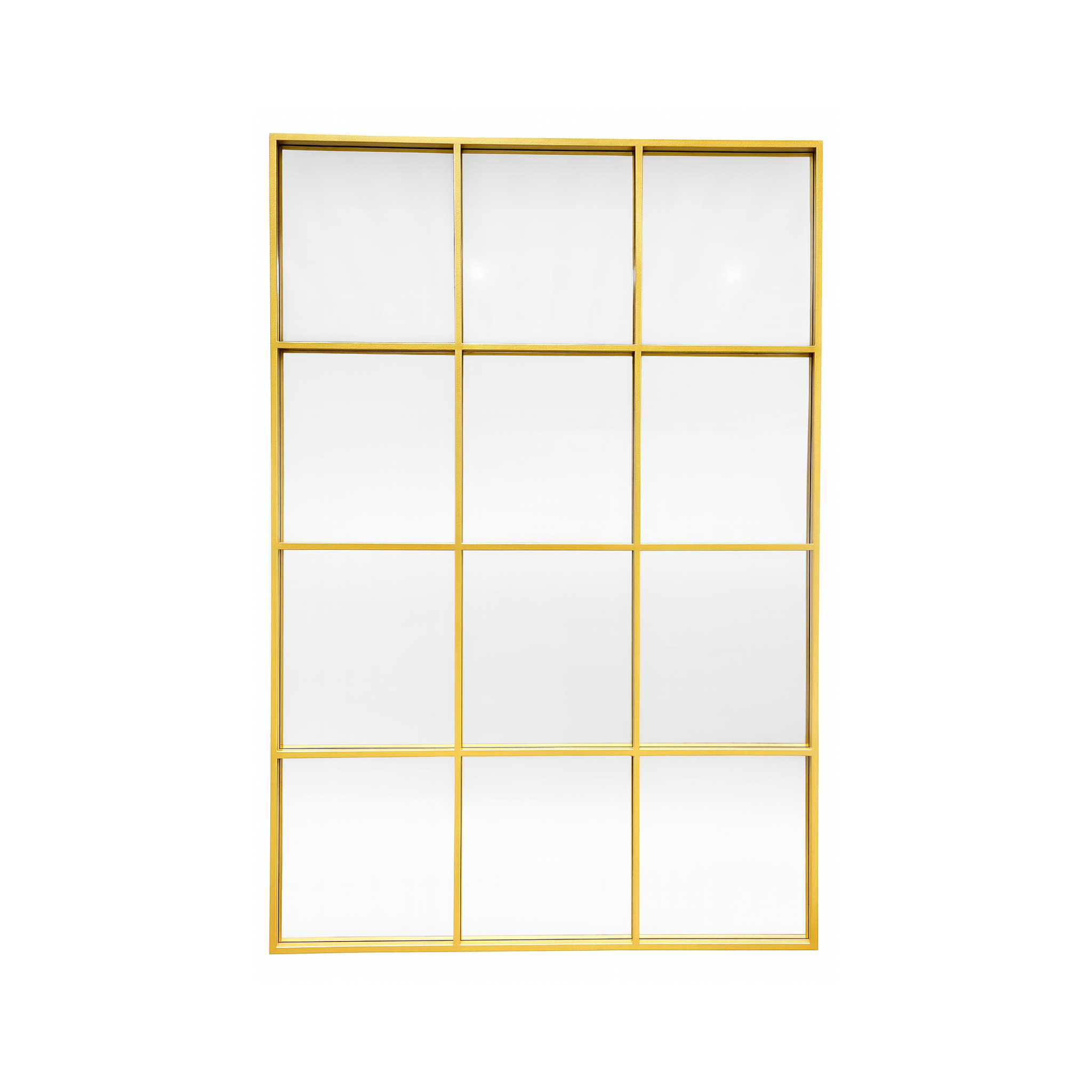 Enhance your décor with this elegant grid-style mirror framed in a luxurious gold finish. Measuring 120 x 80 cm, this mirror features a 12-pane windowpane design, bringing structure, brightness, and timeless style to any interior. The slim, matte gold metal frame adds a touch of glamour while maintaining a clean, modern aesthetic. Perfect for living rooms, bedrooms, entryways, or boutiques, it can be wall-mounted or leaned for a chic, upscale look.
