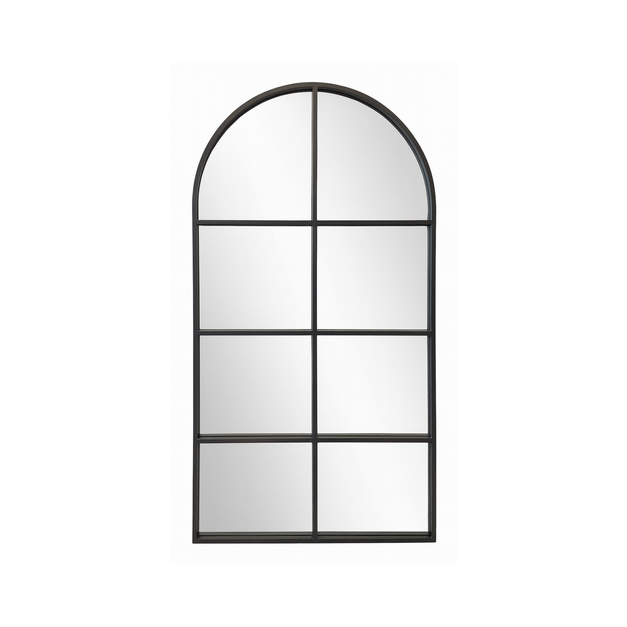 Bring architectural charm to your home with this arched grid wall mirror, measuring 90x60 cm. Featuring a sturdy black metal frame and a classic windowpane design, this mirror evokes a vintage industrial style while opening up any space with light and depth. Ideal for living rooms, entryways, or above console tables, it serves as both a practical mirror and a bold design feature.