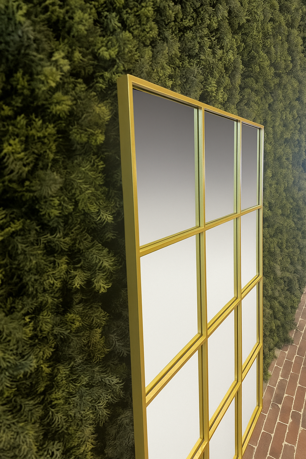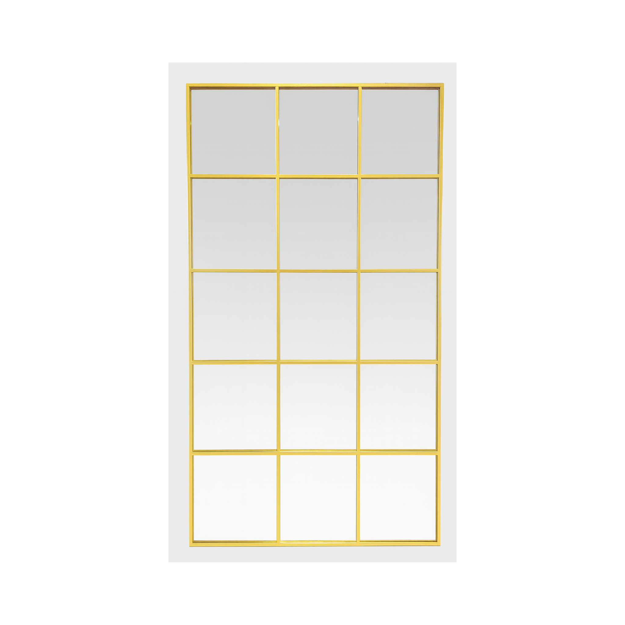 Add luxury and structure to your space with this elegant gold grid mirror. Designed with a slim, matte gold metal frame and a clean 5x3 pane layout, this 150 x 80 cm mirror offers a perfect blend of classic charm and modern refinement. Its tall, rectangular shape enhances natural light and creates the illusion of more space—ideal for entryways, bedrooms, or contemporary interiors seeking a sophisticated focal point.