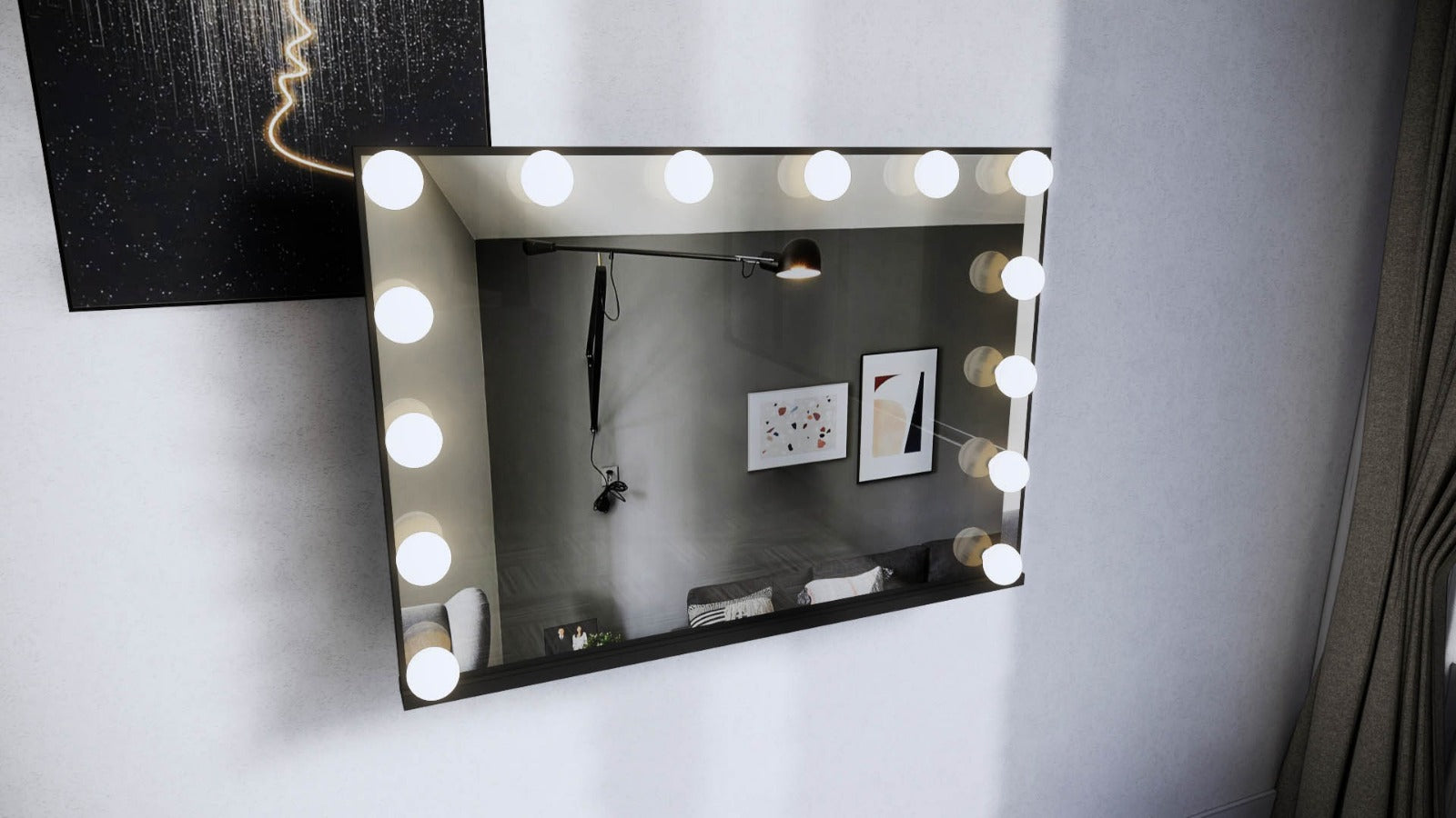 Upgrade your beauty space with this elegant Hollywood-Style Vanity Mirror, measuring 109x81 cm. Perfectly sized for your vanity or dressing table, this mirror features: