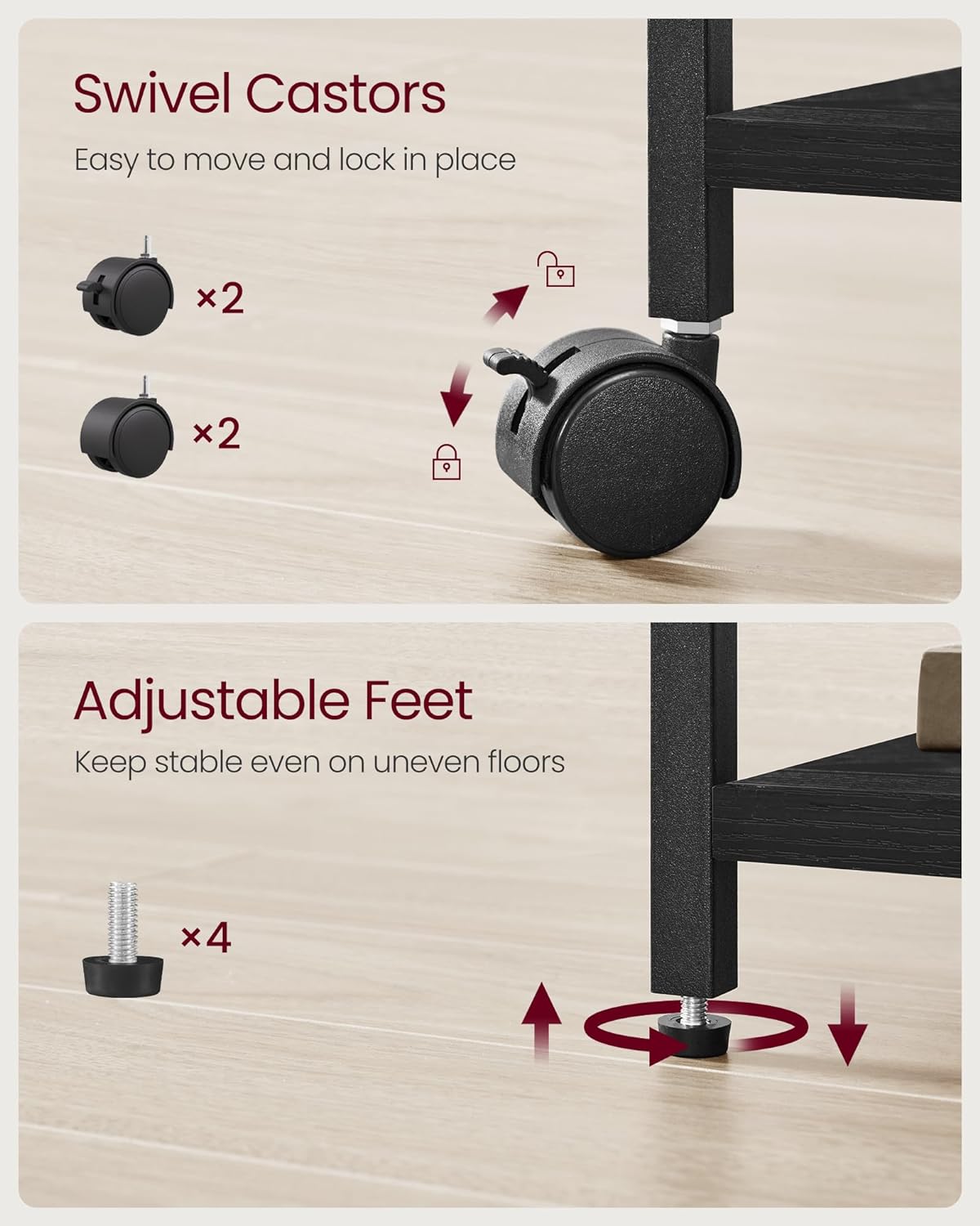 [Roll, Lock, Level] With four 360° swivel castors, 2 of which have brakes, you can effortlessly move and lock the filing cabinet in place wherever you need it. Plus, the adjustable feet provide stable support, ensuring a level surface on uneven floors