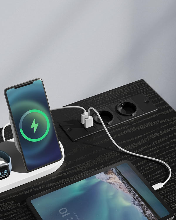 - [Convenient built-in power strip] Equipped with 2 electrical outlets, 2 USB ports and a 2 m power cord, this computer desk makes it easy to charge your phone, laptop, etc