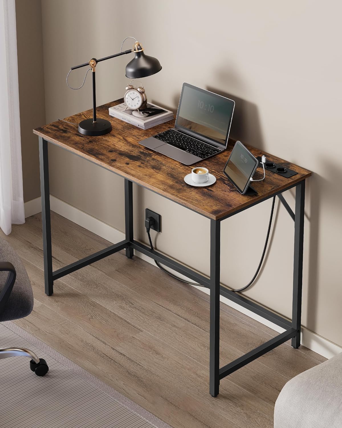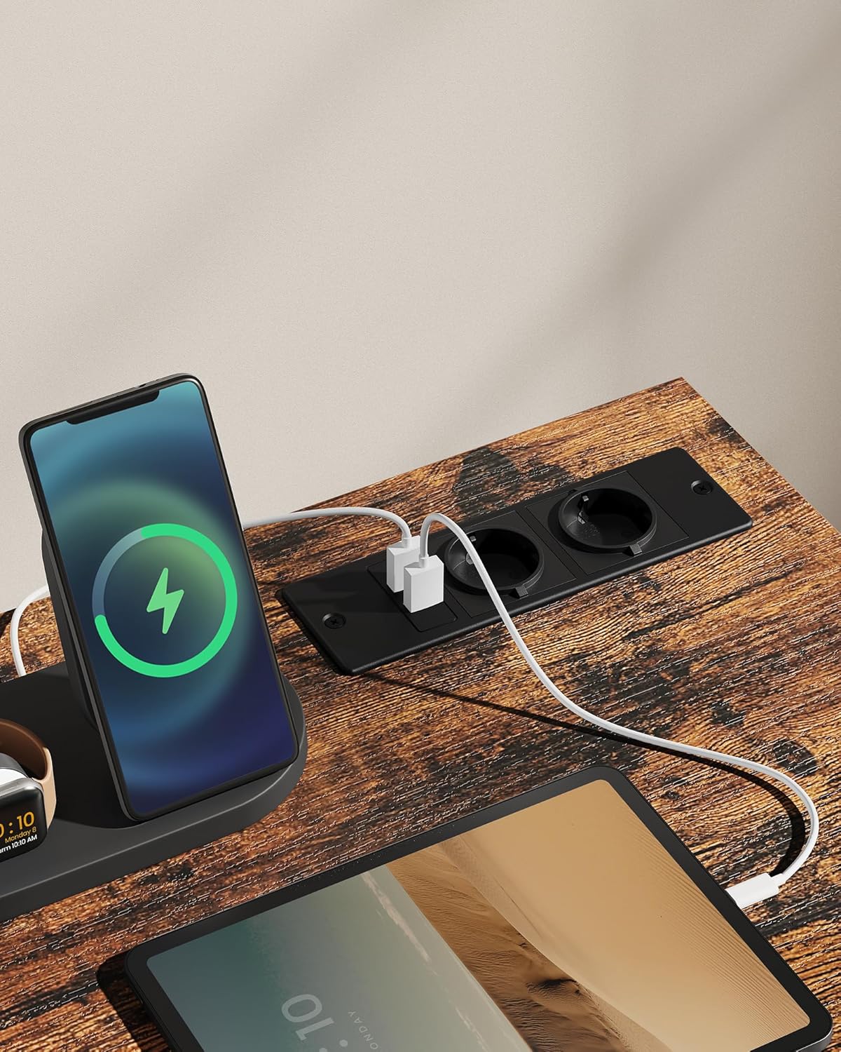 - [Convenient built-in power strip] Equipped with 2 electrical outlets, 2 USB ports and a 2 m power cord, this computer desk makes it easy to charge your phone, laptop, etc
