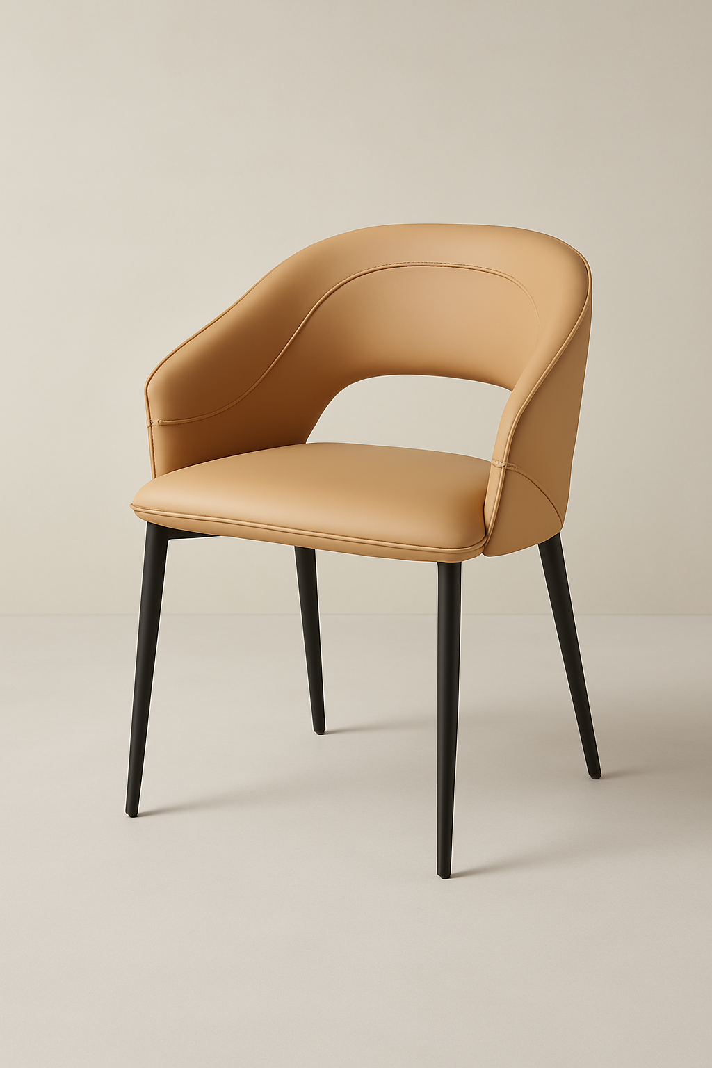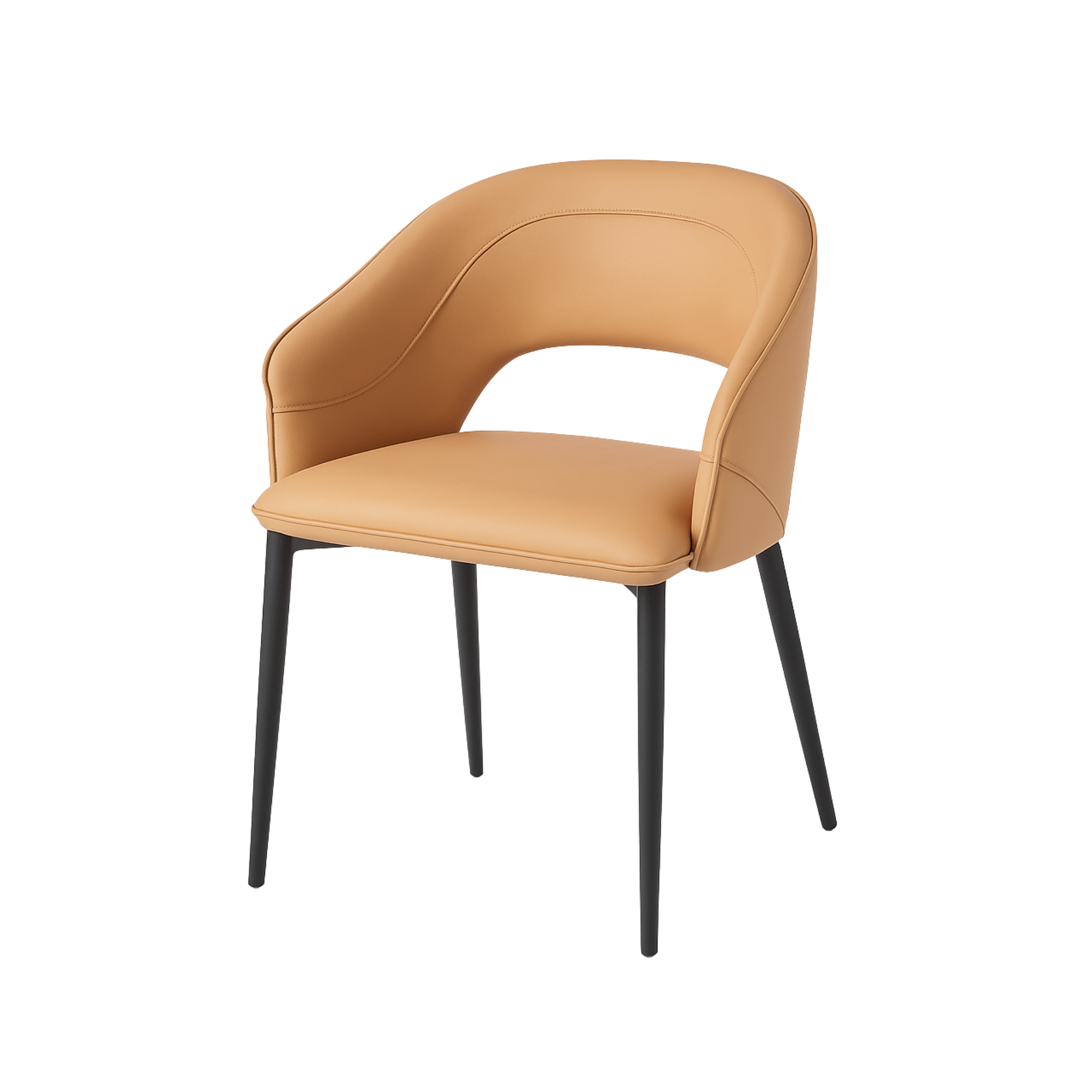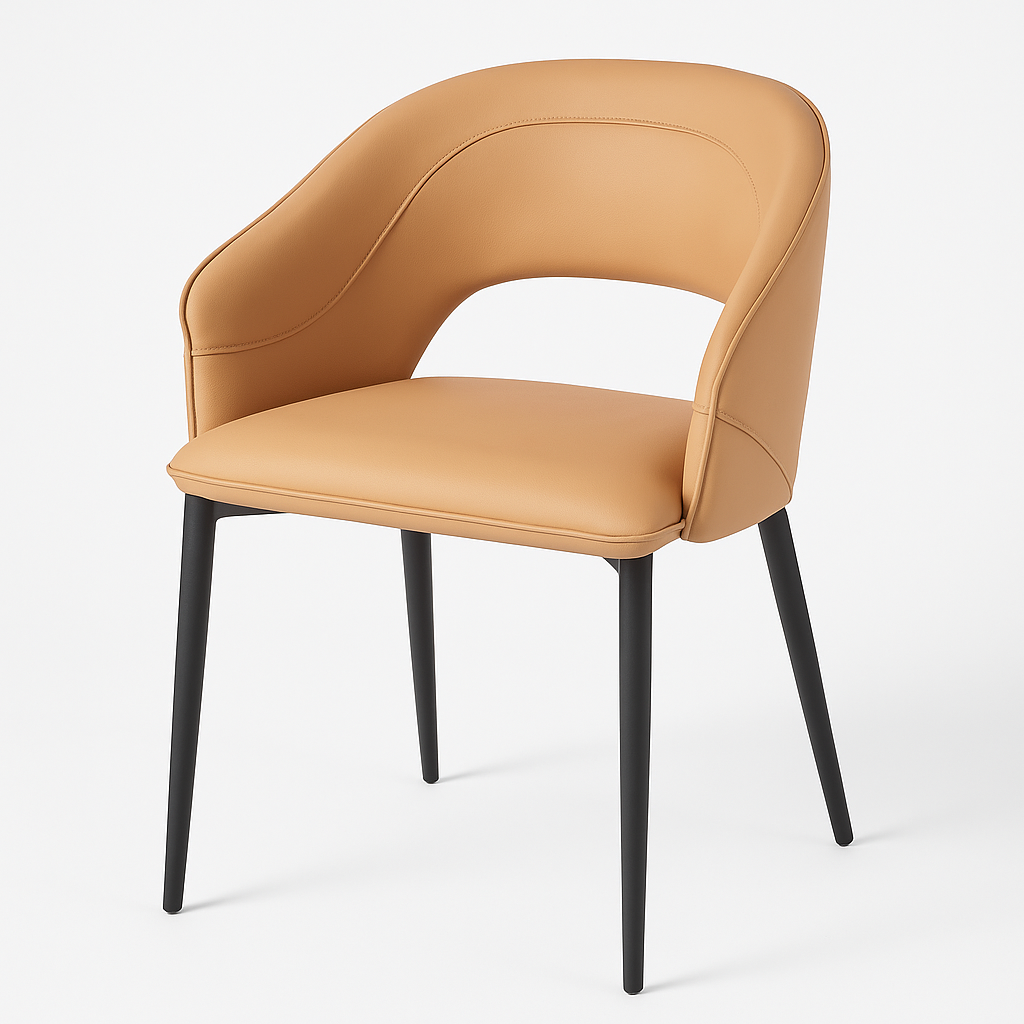 Bring warmth and modern style to your dining space with this set of 2 tan curved-back dining chairs. Upholstered in smooth faux leather, these chairs feature a gently rounded backrest and plush cushioning for comfort and support. The sleek black metal legs add contrast and durability, making them both stylish and functional.