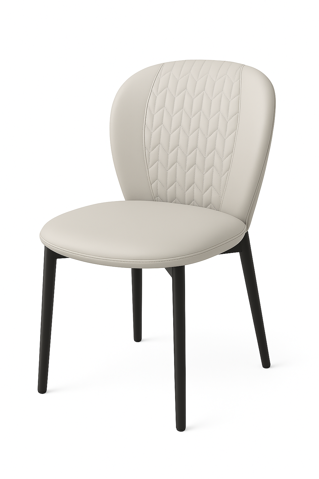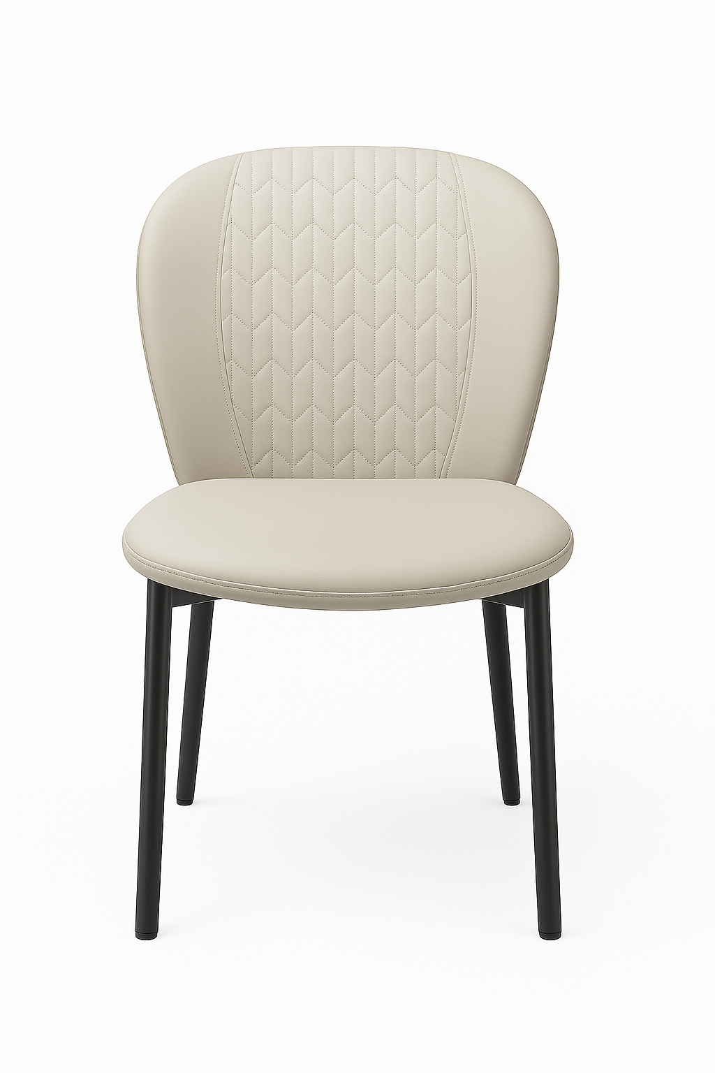 The ergonomic curved backrest ensures excellent support, while the sturdy black metal legs provide lasting stability and a sleek contrast against the light-toned seat.