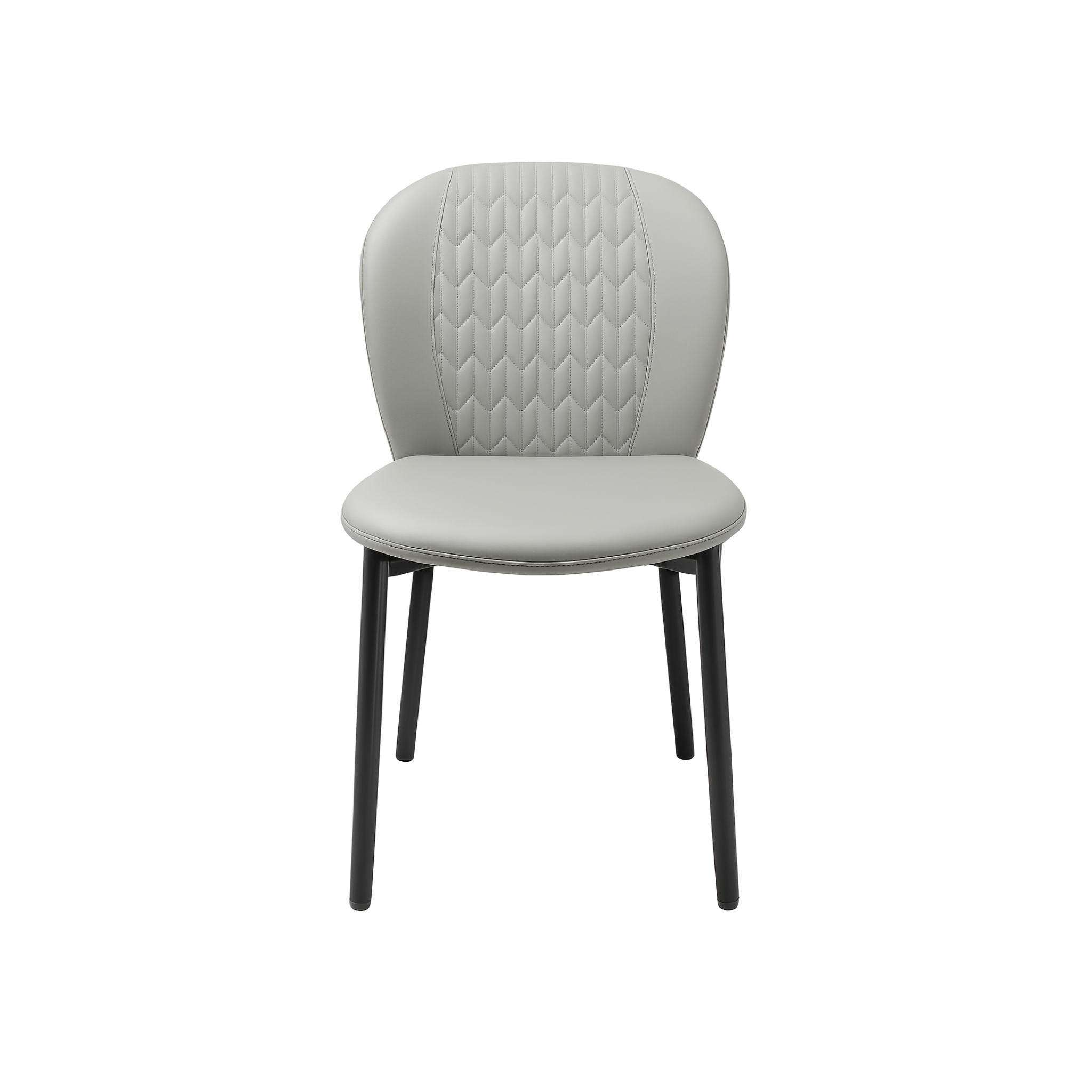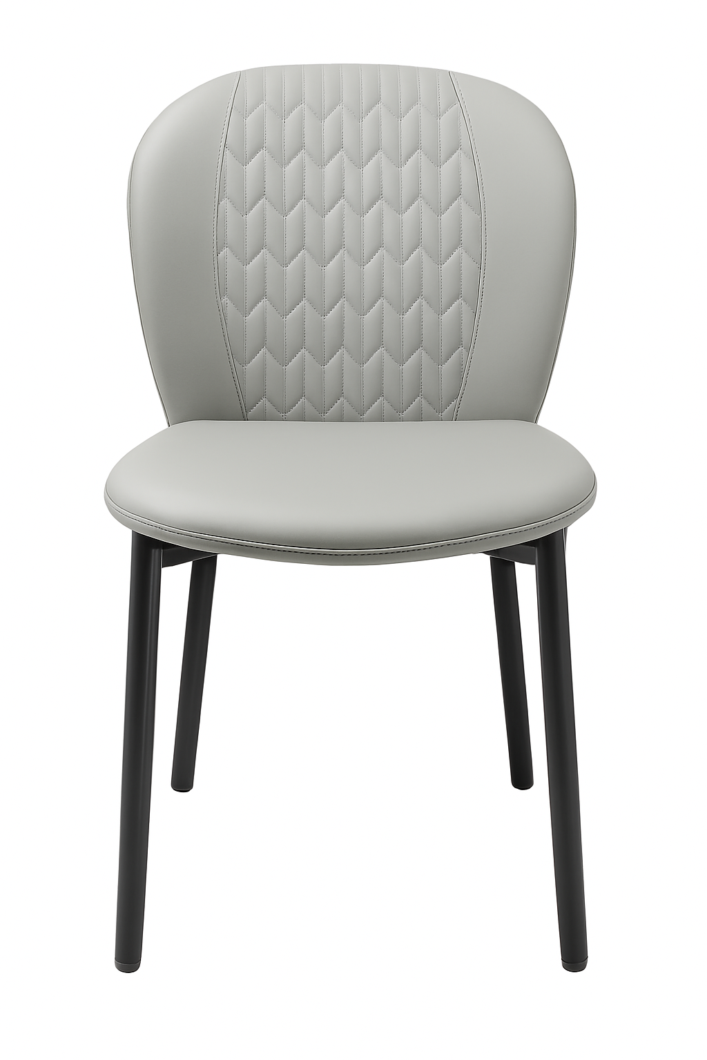 The soft grey faux leather pairs beautifully with the sleek black metal legs, creating a modern aesthetic that complements any interior — from minimalist dining rooms to stylish cafés. Built with high-quality materials, these chairs are durable, easy to clean, and perfect for everyday use.