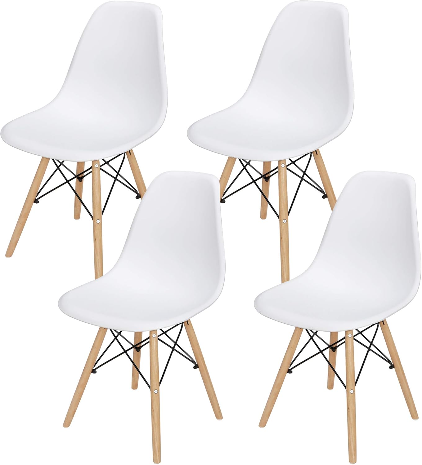 - 【Quality PP Seat Shells and Wooden Legs】- The seat shell is made of high quality PP material, which has high impact resistance and good toughness. Designed with solid wooden walnut legs, more sturdy and looks more beautiful. Black strengthened metal frame supports on the bottom of the chairs to ensure stability. Lightweight and sturdy construction, weight capacity up to 275 lbs