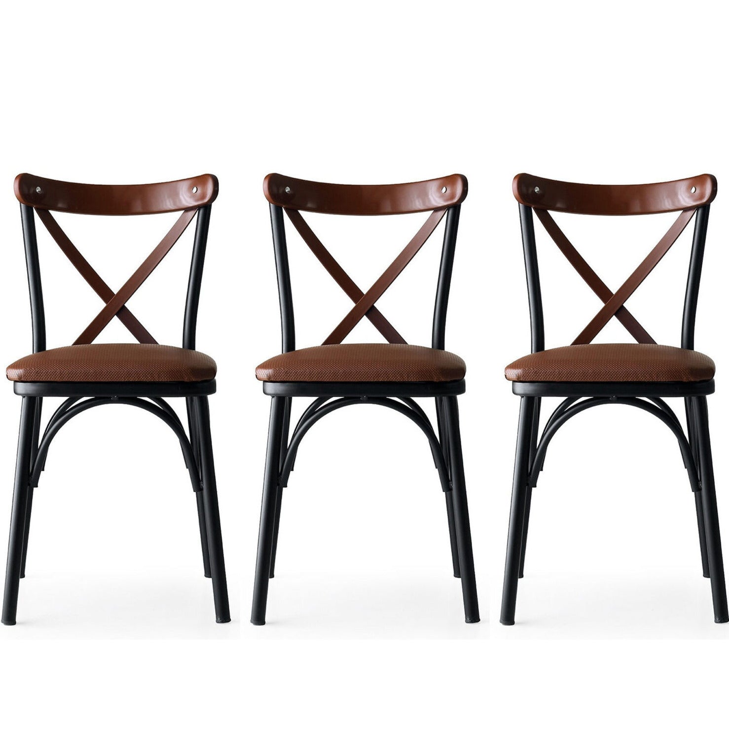 The classic design, featuring a combination of metal frame, plastic back, and brown PU leather seat, exudes timeless elegance.