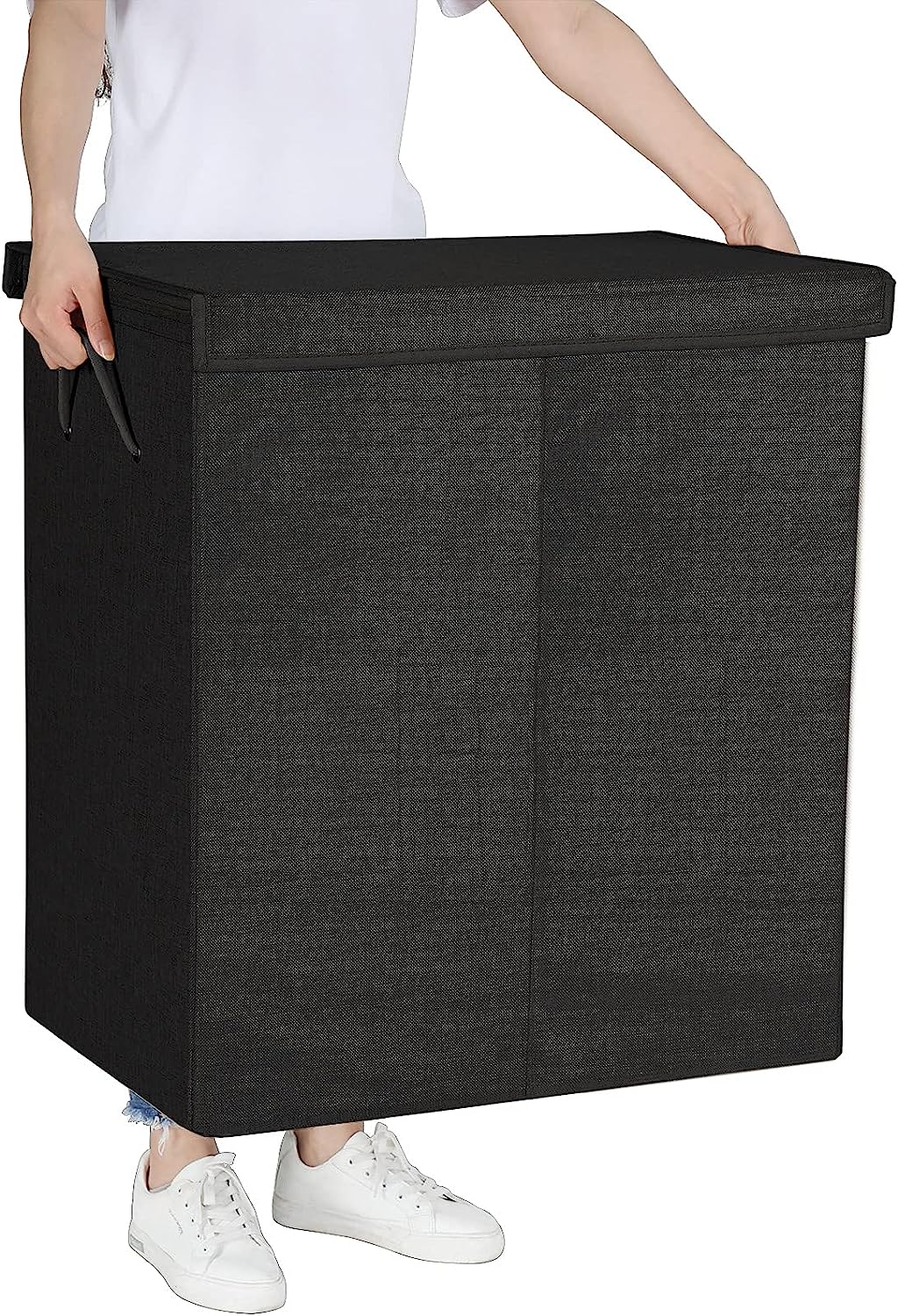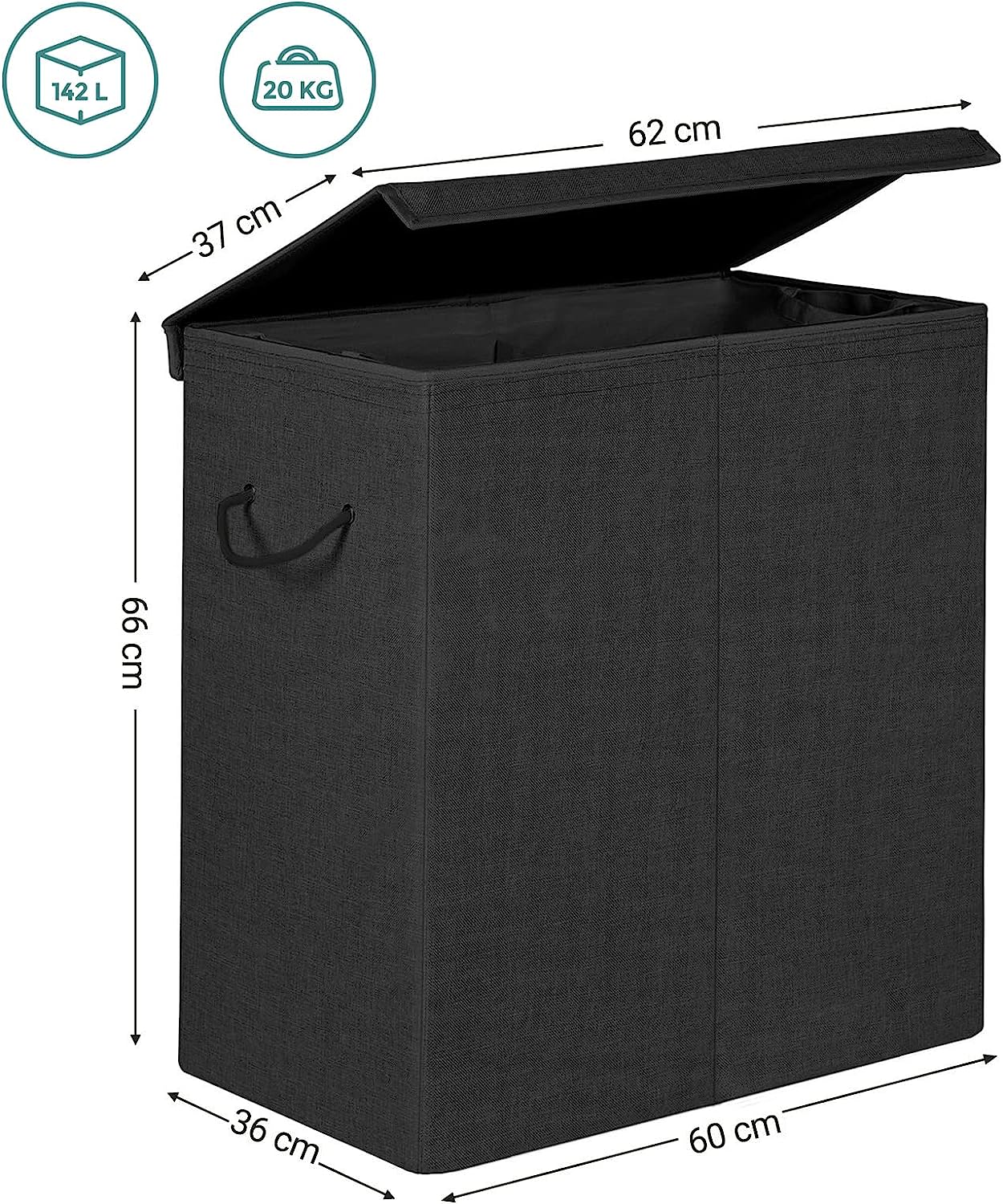 - [Large capacity, sortable] The laundry hamper has a large capacity of 142L with 60 x 36 x 66cm (L x W x H), and can store towels, sheets, pillows, etc. The 2 compartments can classify different colours