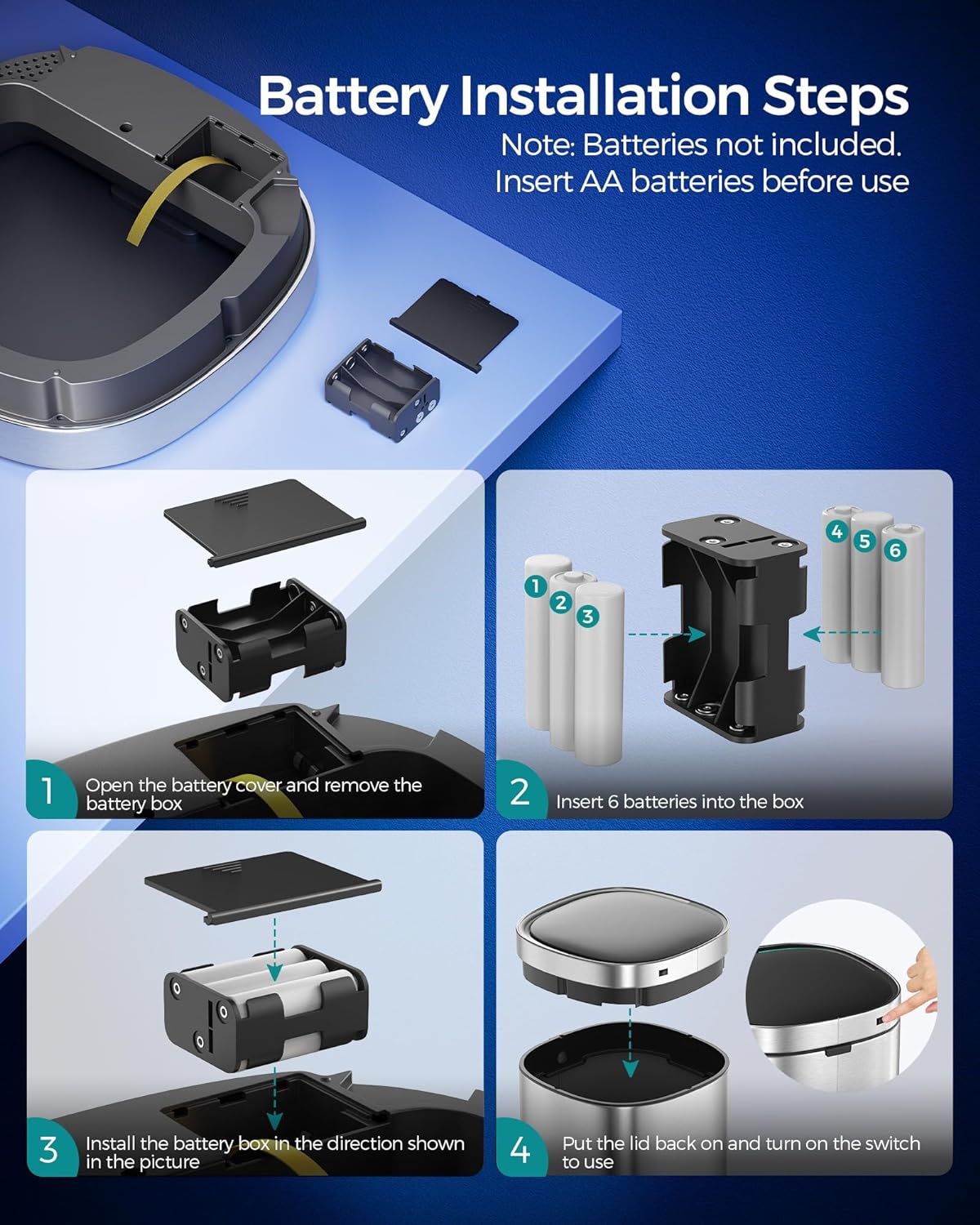 [Motion Sensor] Just wave your hand 9.8" or less above the sensor, and the lid will automatically open within 0.3 seconds, offering a convenient option that frees you from touching the can. The lid will automatically close 5 seconds after opening