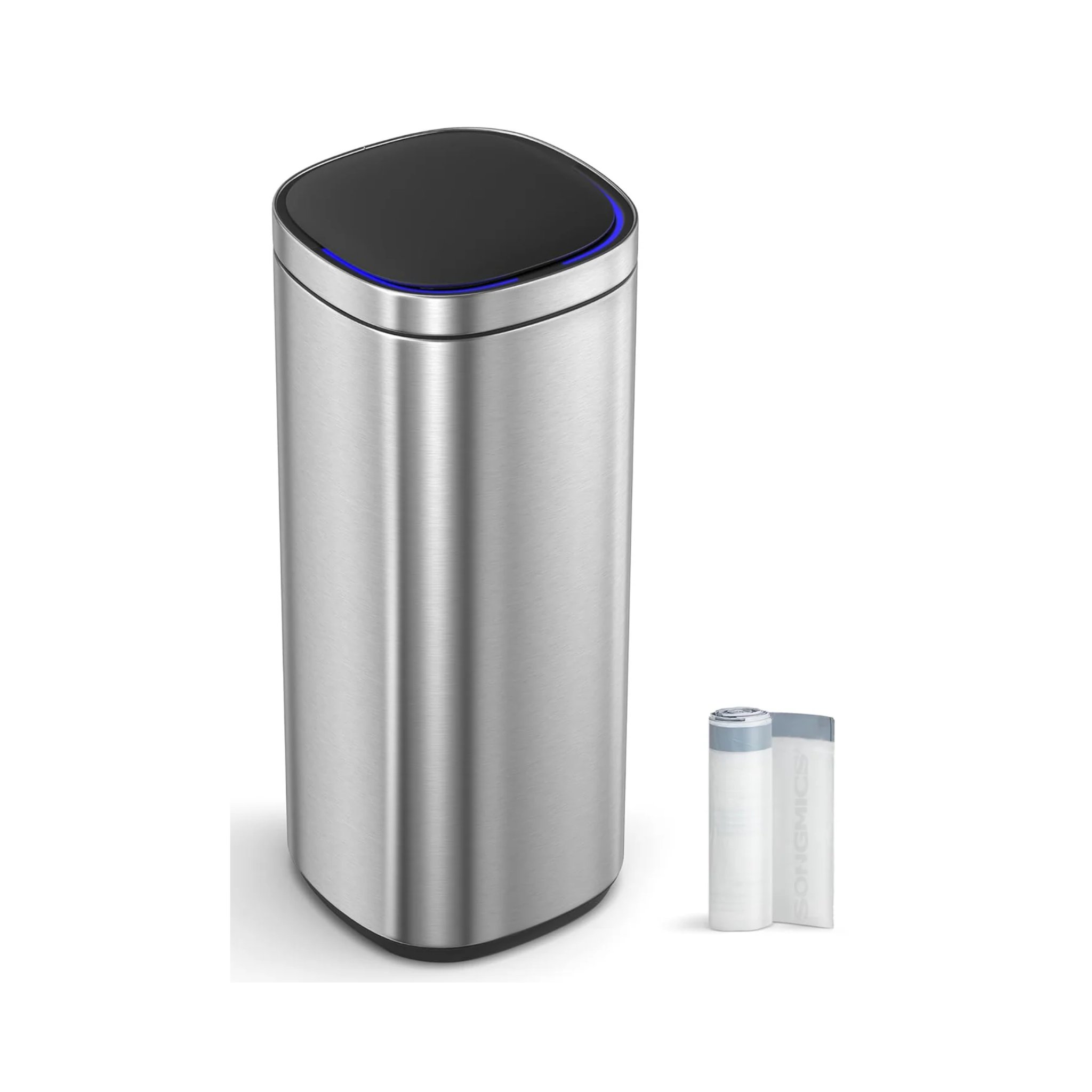 [Quality Stainless Steel] Made from stainless steel, this touchless trash bin is fingerprint-resistant and easy to clean with a damp cloth. It adds a stylish modern touch to any kitchen