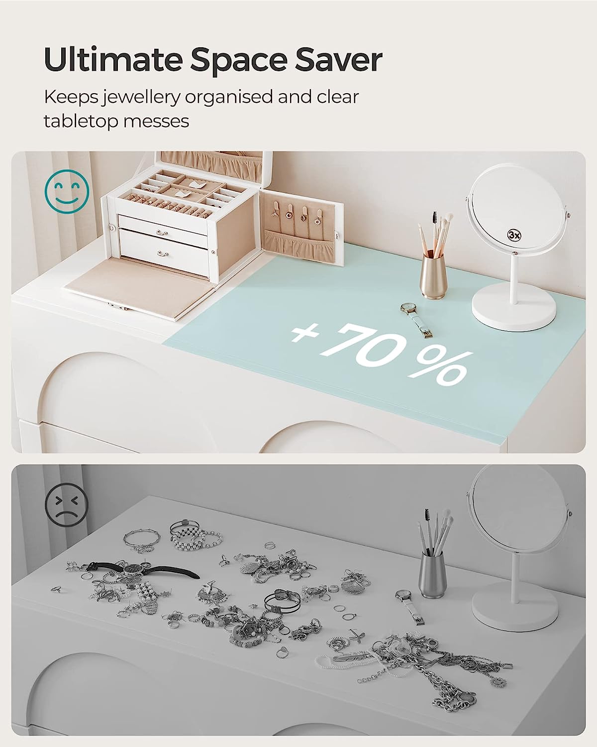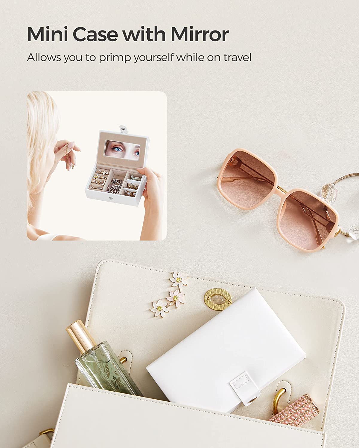 - [Mini Box Can Be Used Separately] This jewellery box comes with a box inside that can be removed and placed in your bag to take your jewellery with you when traveling, and comes with a mirror that is convenient for styling on the go