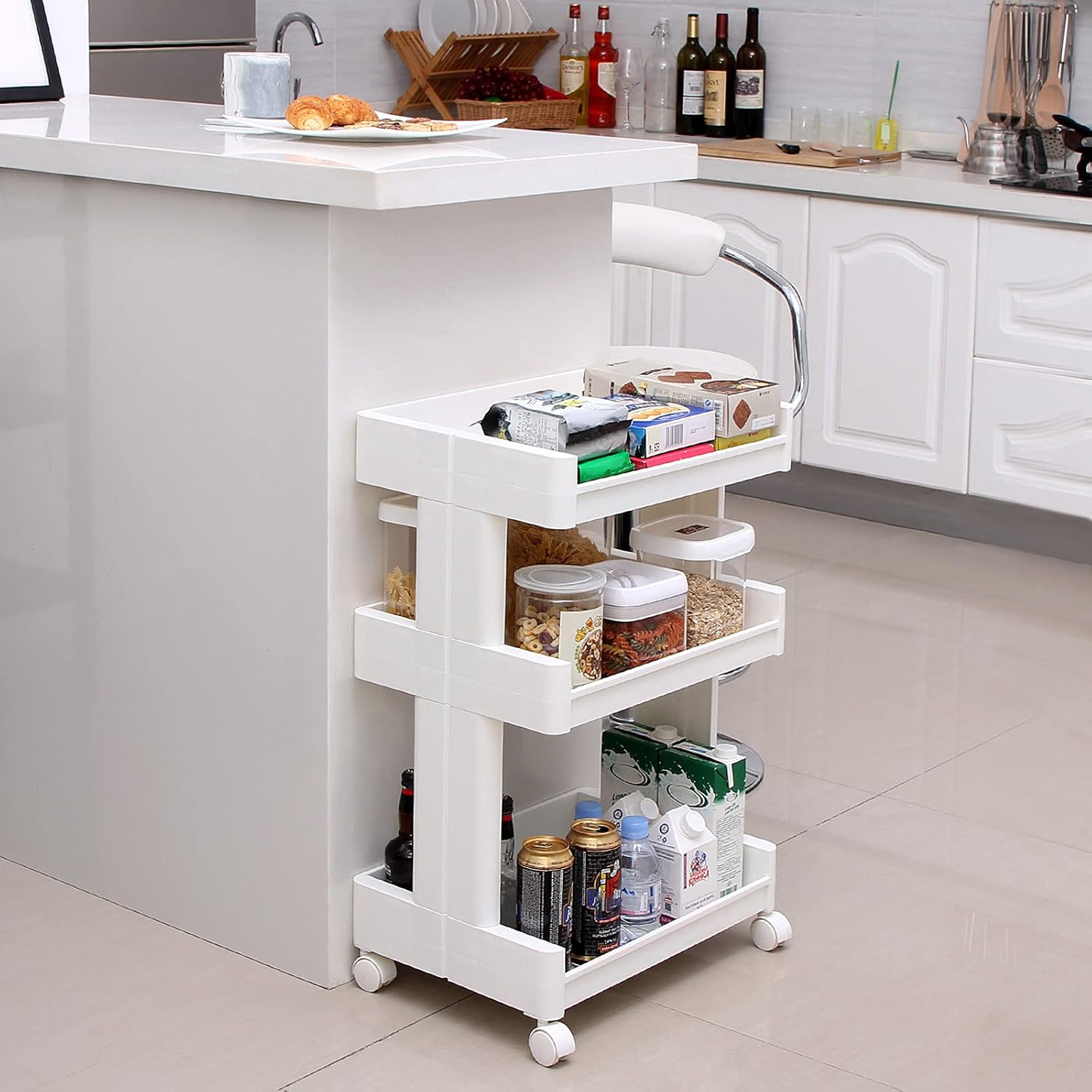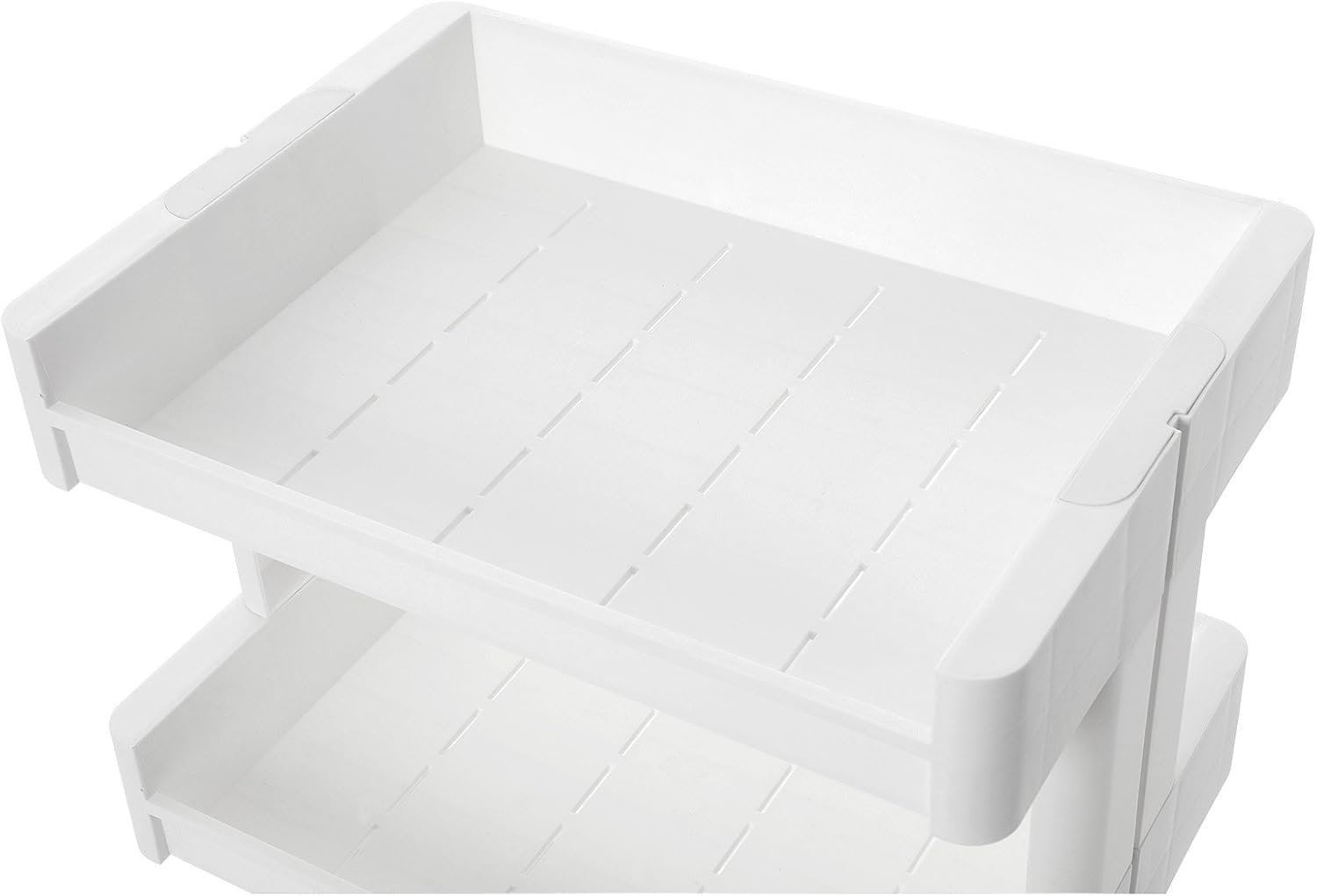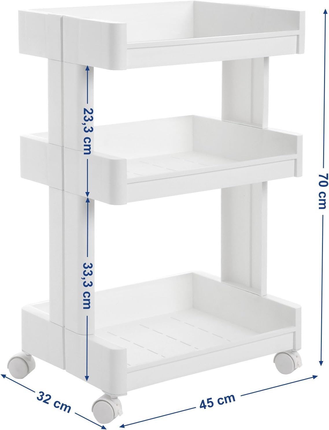 Meets Your Storage Needs - Overall size is 45 x 32 x 70 cm (W x D x H), with 3 shelves available; height between shelves is 33.3 cm and 23.3 cm respectively; raised edges prevent items sliding off; shelves are connected by snap joints and the whole cart can hold up to 18 kg