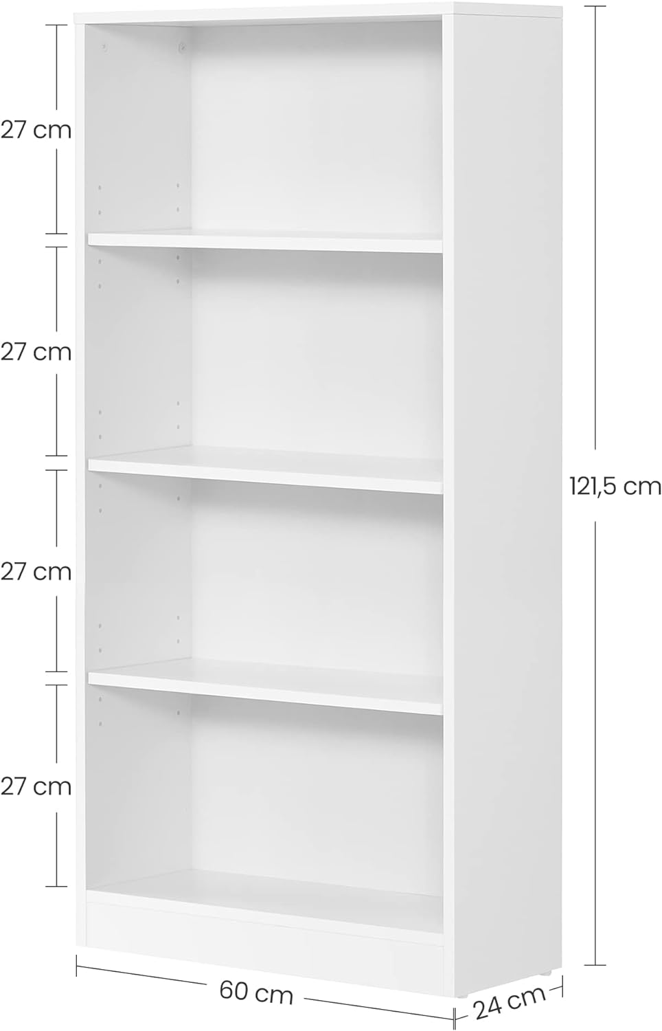 What you get: A free-standing bookcase in the size of 60 x 24 x 121.5 cm with 4 storage compartments that fit perfectly in small spaces. Use it vertically or horizontally to create additional storage space in your home