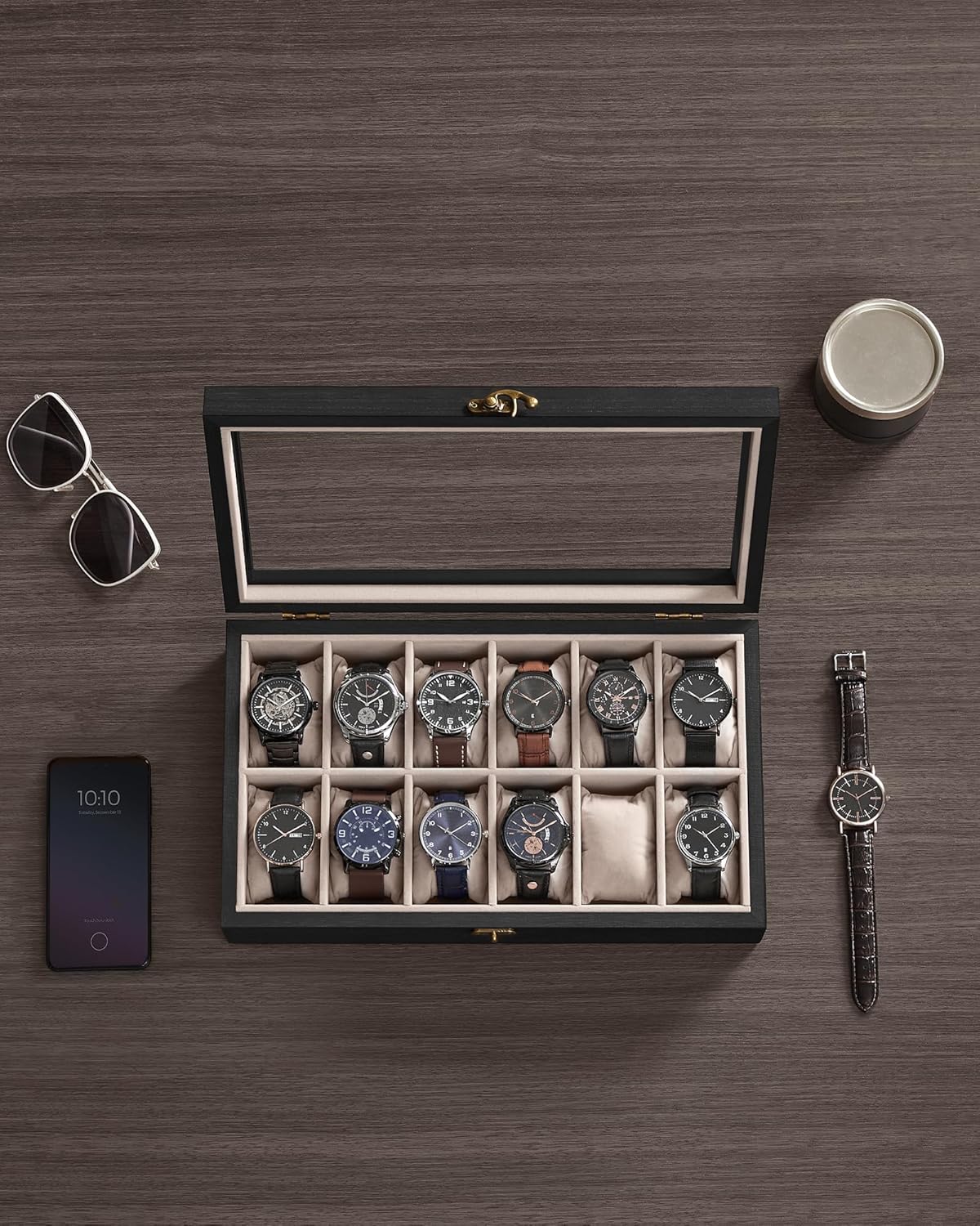 [Clear Glass Lid] Displaying your watches, keeping your watches clean from dust, helping you find your watches easier, or deciding on which watch to wear today without opening the lid—this glass lid ticks all the boxes