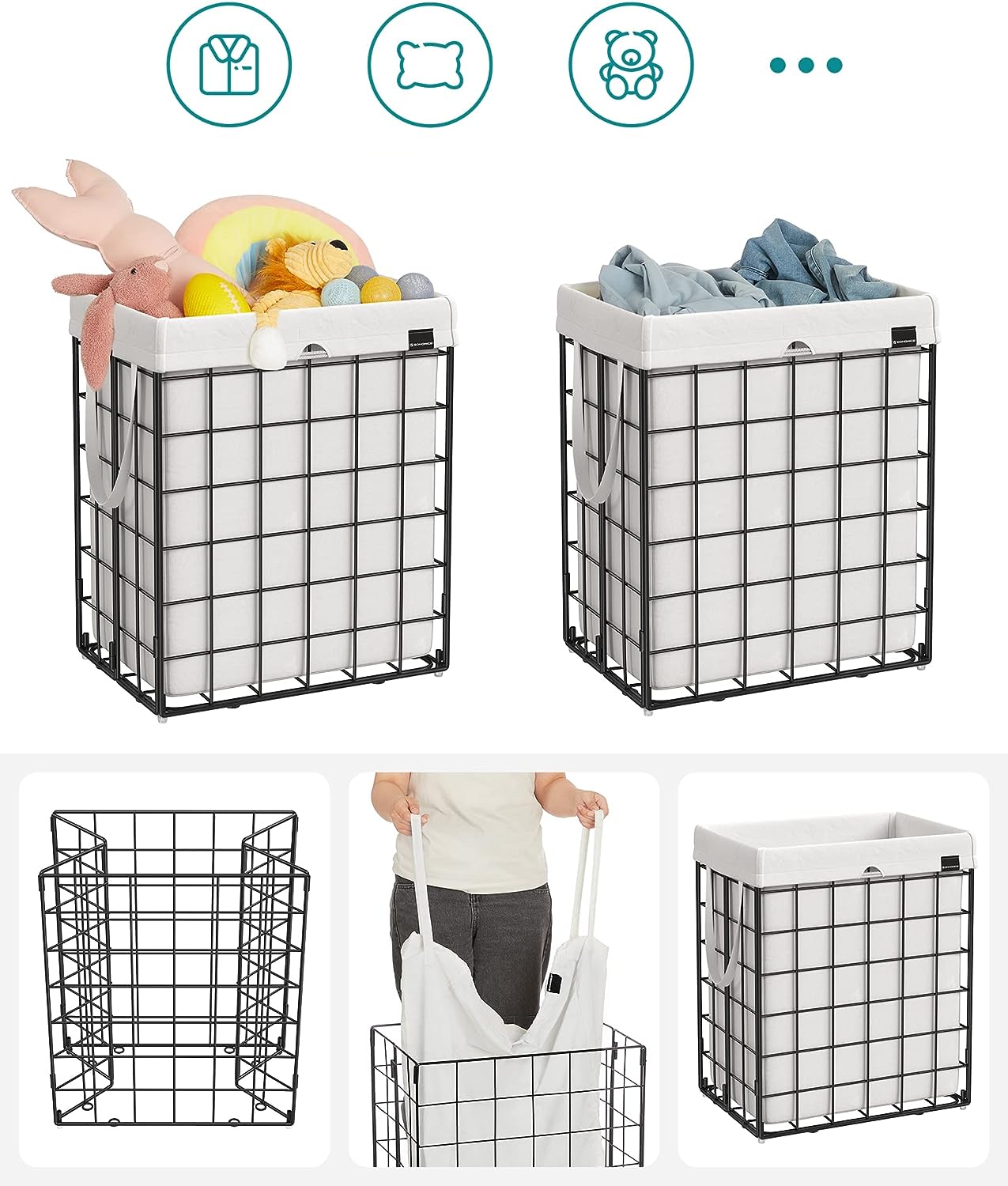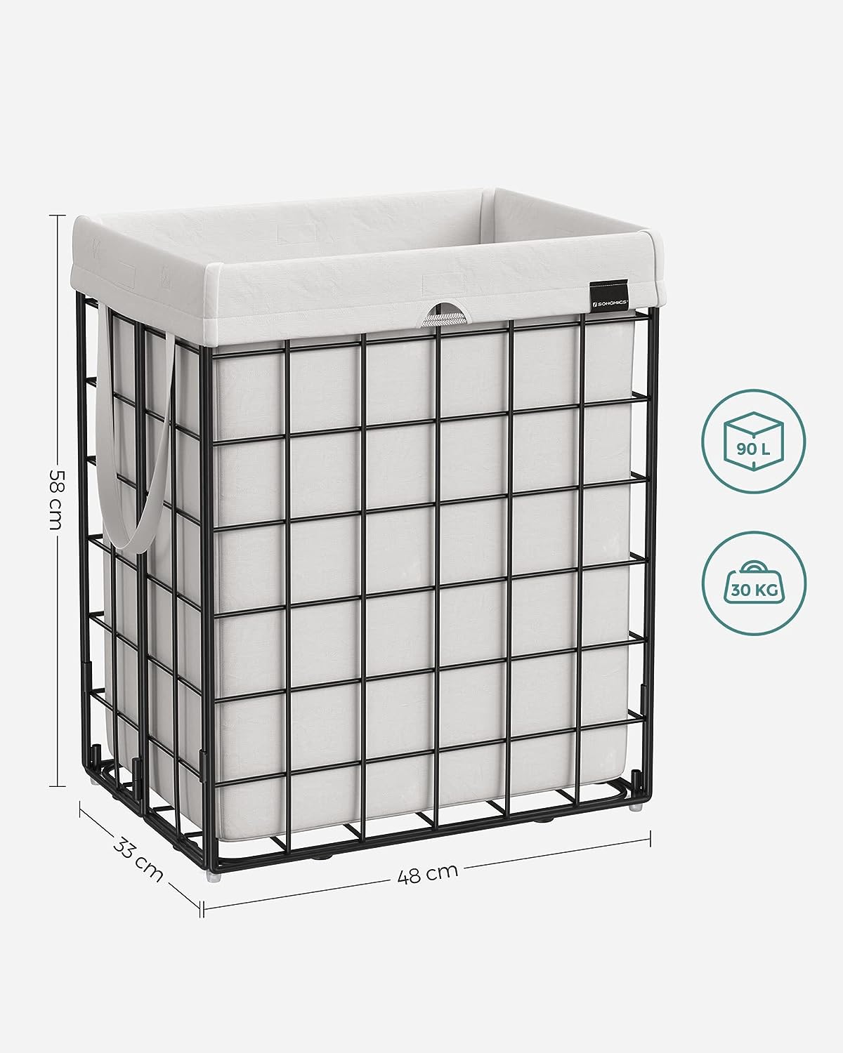 - Select Materials, High Sturdiness: The 200 g/m² fabric bag is very sturdy and can hold up to 44 lb, while the wire basket can hold up to 66 lb. Feel free to fill the laundry basket to the brim with all your dirty laundry