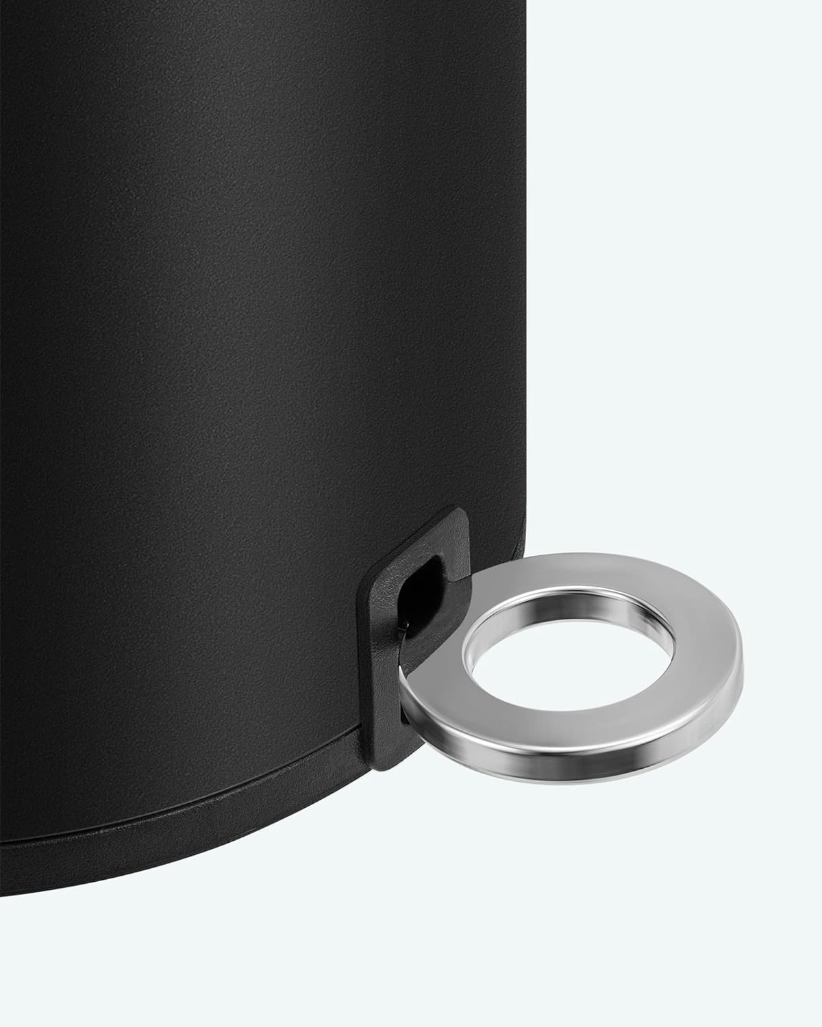 - [Foot Pedal & Secured Bag] Simply step on the pedal to open the lid of the bathroom waste bin, giving you a hygienic option to throw things away without using your hands. The hole in the inner bucket allows you to secure the edge of the liner in place