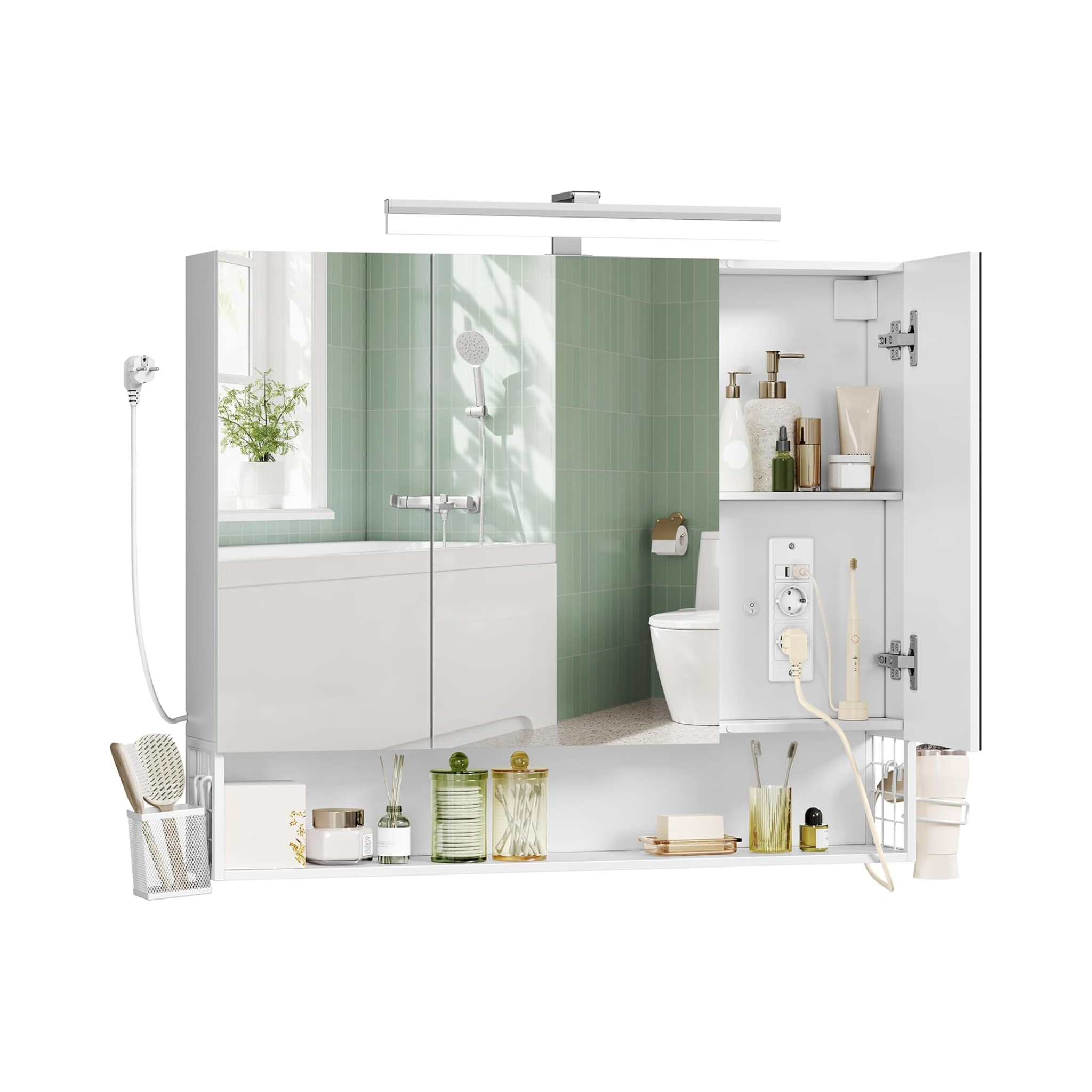 - [Thoughtful Design] The top of the mirror cabinet is equipped with a light bar that makes it easier for you to see yourself in the mirror, so you can easily complete your daily skincare and makeup routine