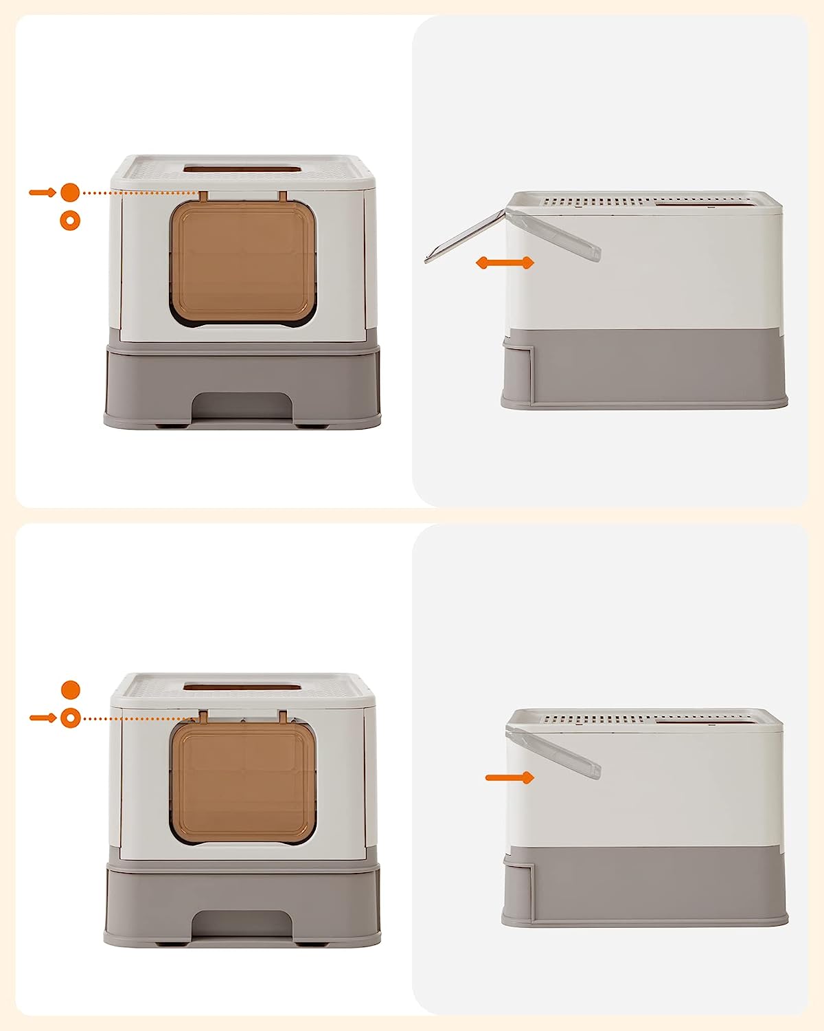 [Easy to Slide, Easy to Clean] This covered cat litter box with a slide-out tray makes it easy to clean or change litter. A scoop and a brush are included to help scoop the waste and clean the litter on the top or in the corners