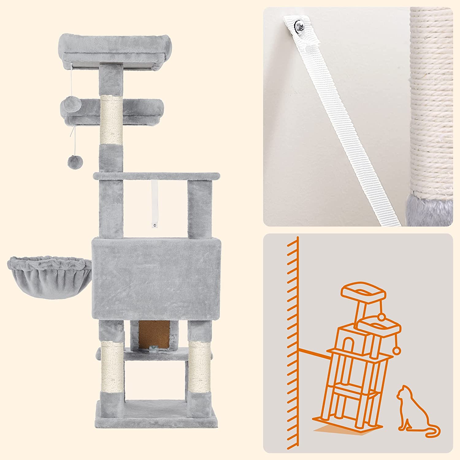 - Have an Energetic Cat? No worries. With a reinforced base for extra stability and an anti-tip kit for added safety, this cat tree is strong and stable for your sweet bundles of energy to jump up and down
