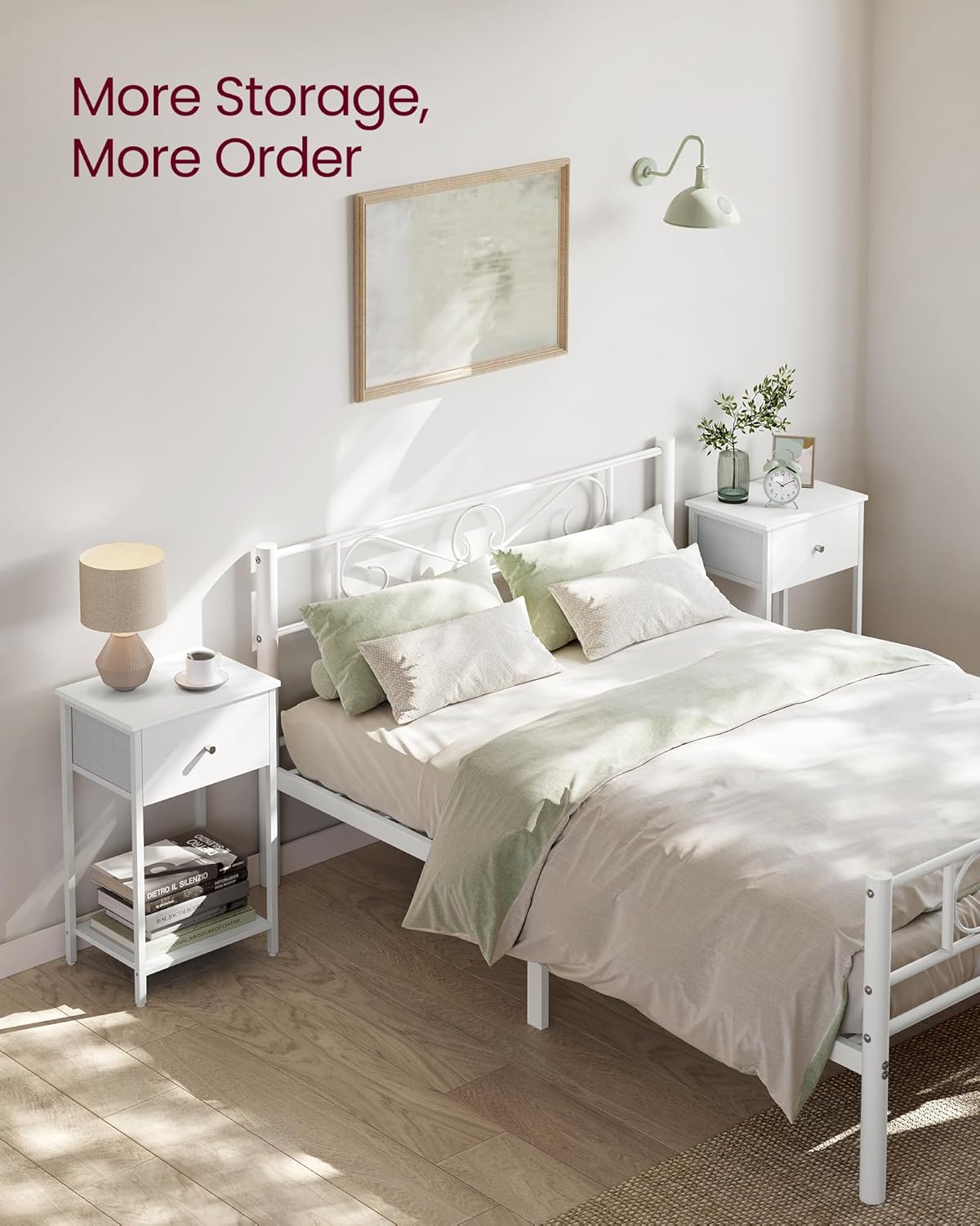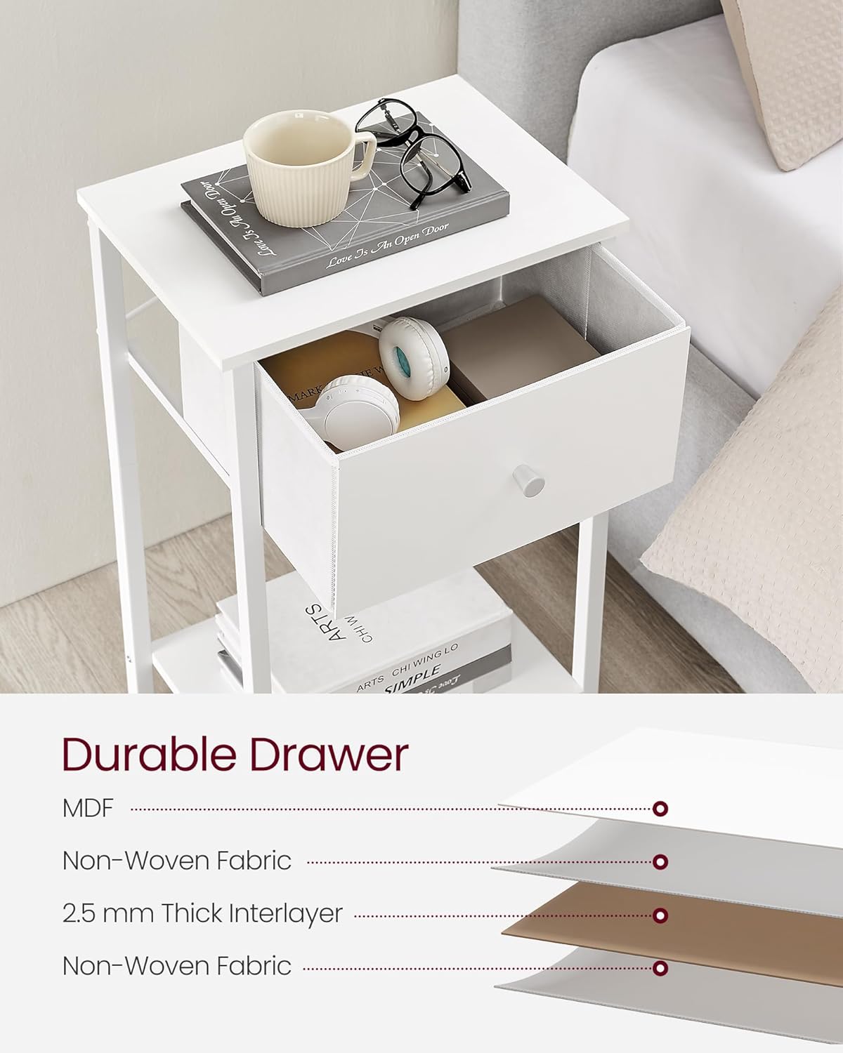 - [Sturdy & Stable] Made with particleboard, a steel frame with an X-bar, a durable non-woven fabric drawer, and balanced by 4 adjustable feet, this end table with drawer offers firm, stable, and lasting support