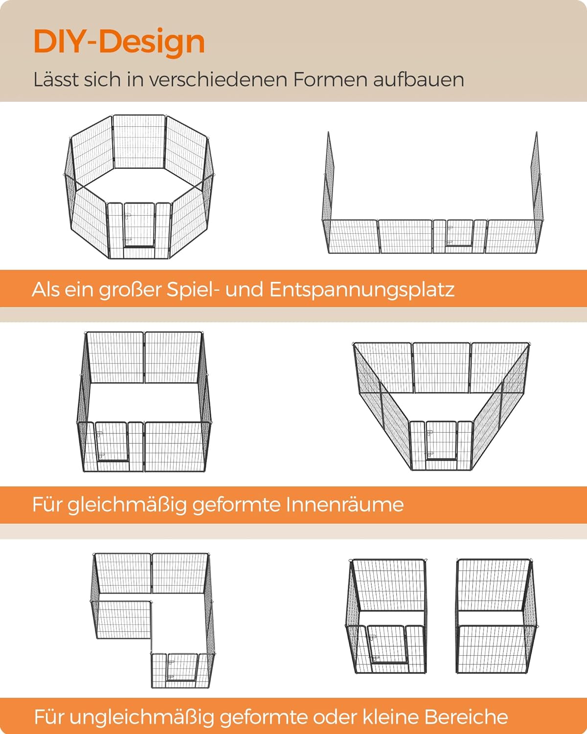 For indoor and outdoor use: this outdoor enclosure can be placed indoors to give your dog a large and safe leeway; thanks to the rust-resistant coating, the dog fence is also suitable for outdoor use