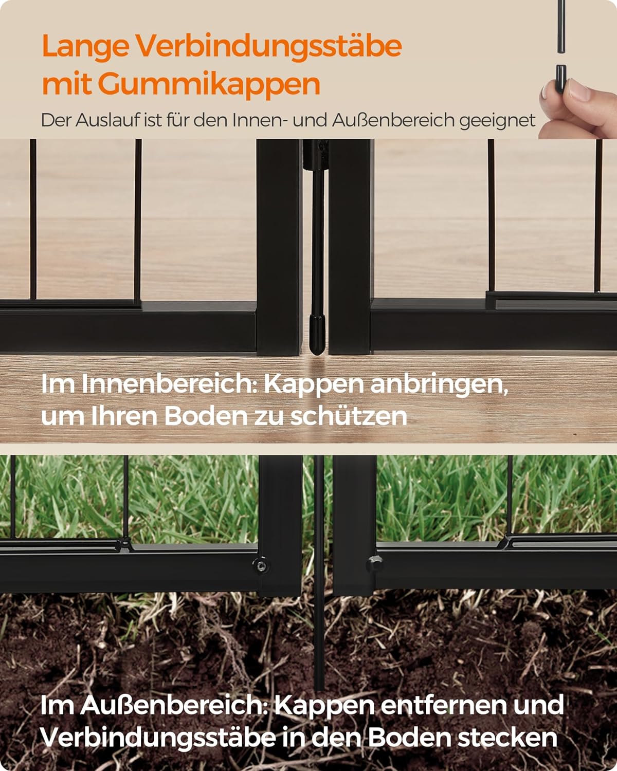 [Robust & Stable] This dog playpen is made of high-quality steel frame, which is strong and stable, and each grid element has anti-slip pads at the bottom and the connecting rods have a rubber cap to improve stability