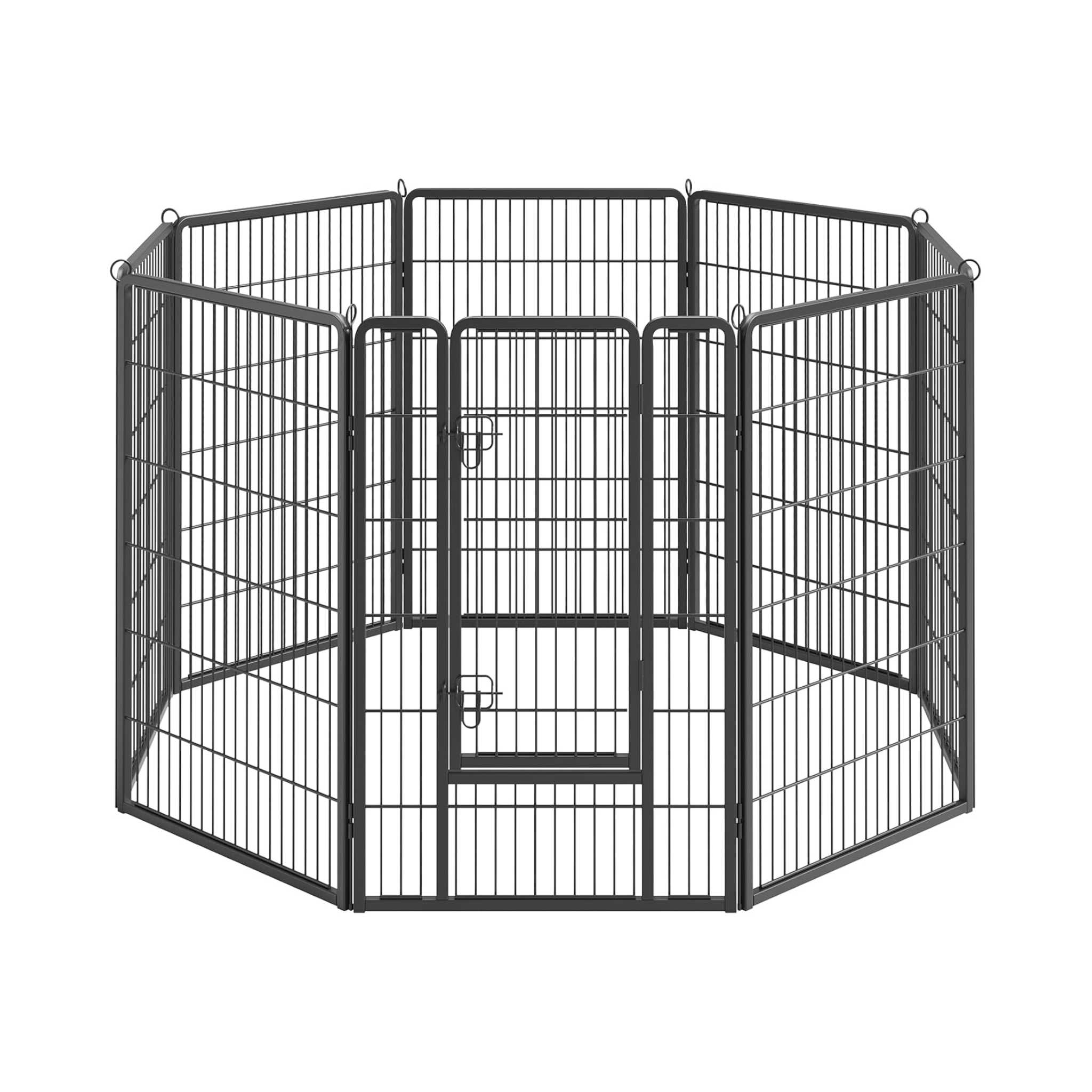 [Safe & Reliable] The portable playpen is equipped with 2 L-shaped latches, which provide double protection and are difficult for pets to open. It has rounded corners and no sharp edges, making it safe for pets