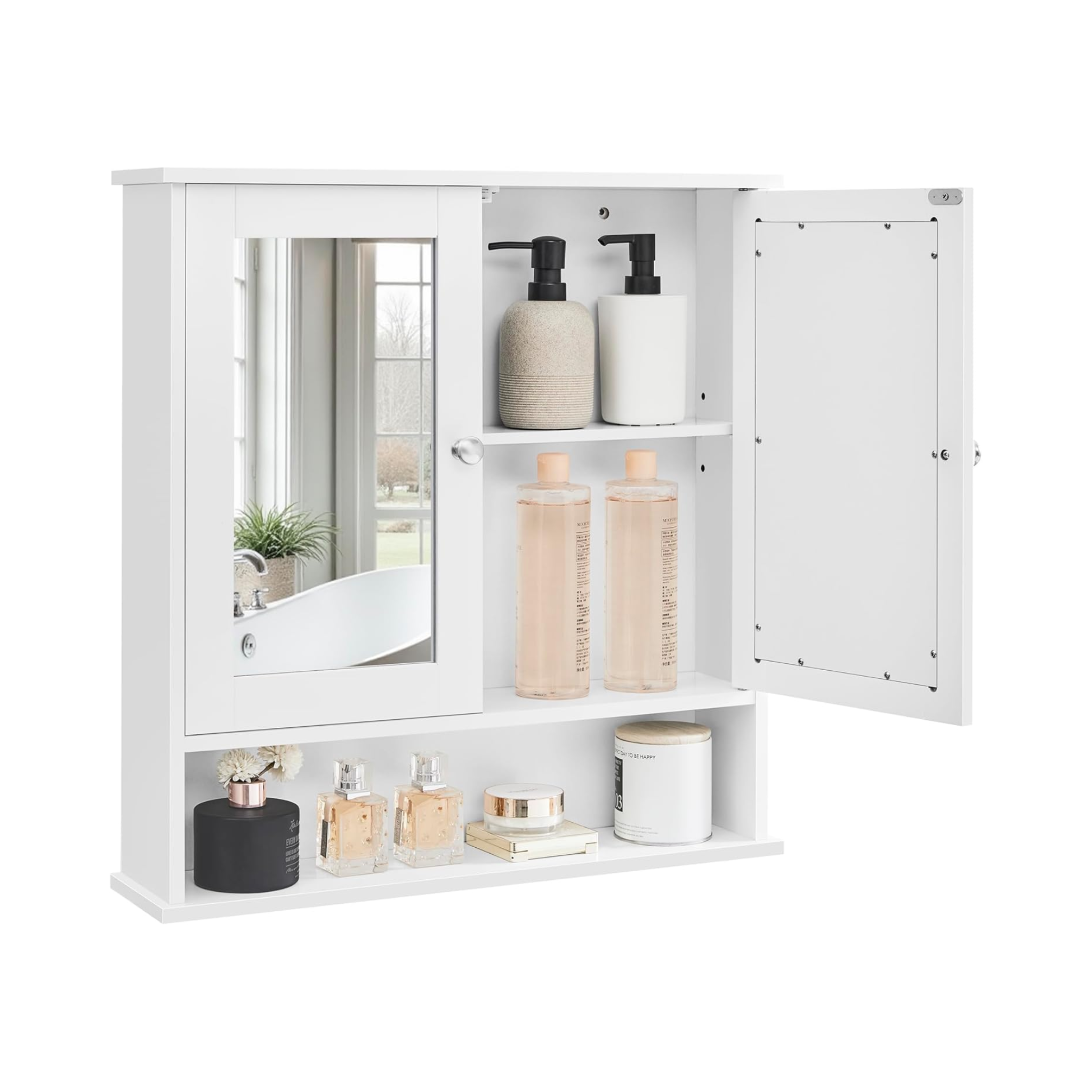 DEPENDABLE MATERIALS: Made with reliable engineered wood, metal hardware, and durable glass mirrors, this moisture-proof bathroom cabinet is the ideal wall-mounted storage solution for just about any bathroom