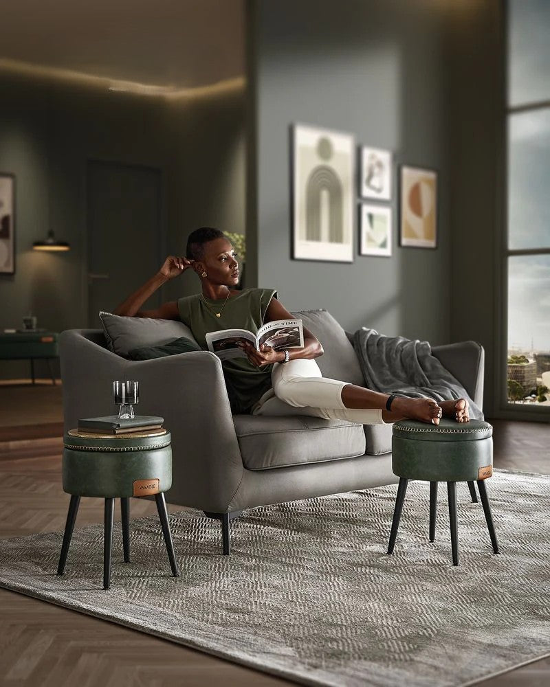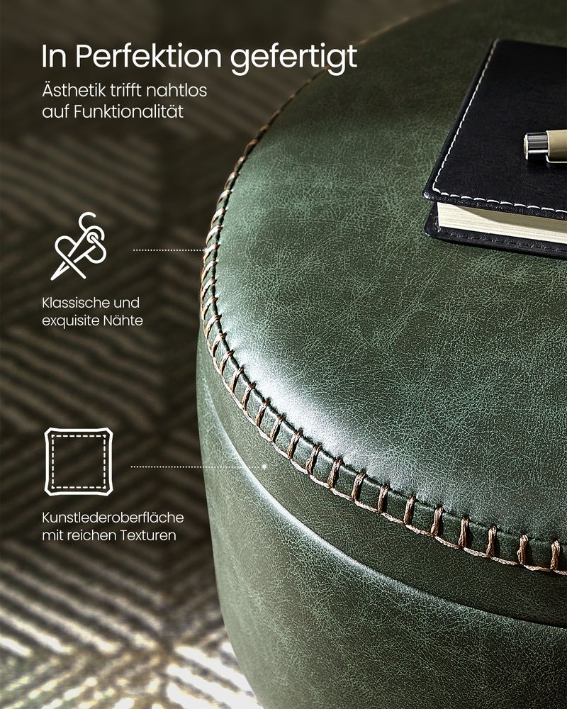 [Enhance Your Space] Witness the blend of synthetic leather, refined stitching, and sleek tapered legs in the storage ottoman from the VASAGLE EKHO Collection, a tangible homage to the spirit of crafts, elevating your home to new heights of sophistication