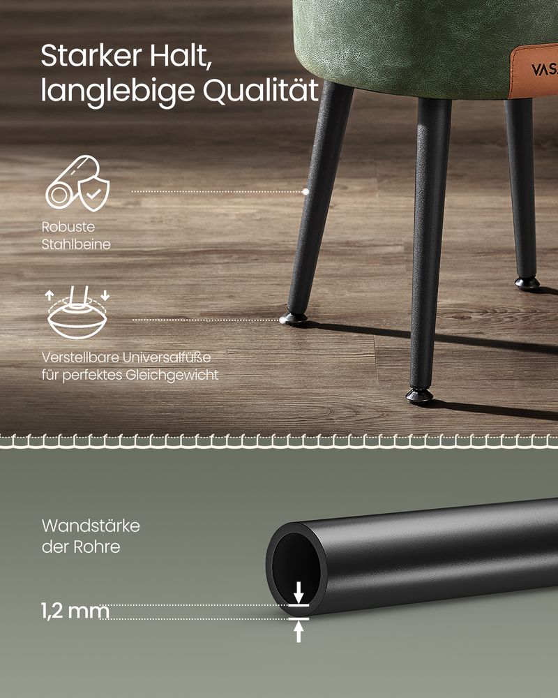 [Built to Last] This vanity chair is constructed with 4 sturdy steel legs, reinforced with a 1.2 mm thickened wall, and swivel leveling feet. You can confidently rely on it to support up to 330 lb (150 kg)
