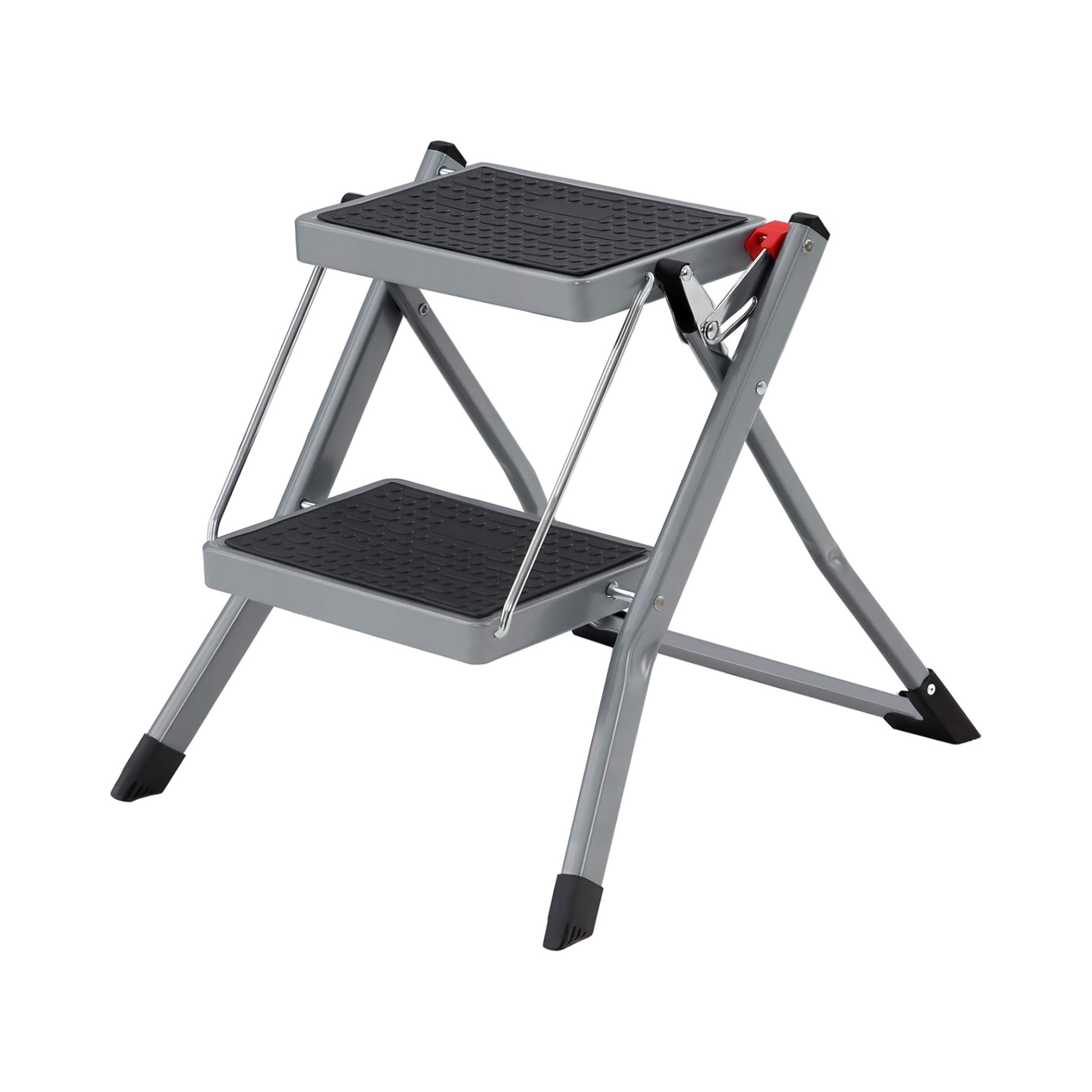 - What you get: A folding ladder with 2 steps, which is lightweight, compact and versatile and has a carry handle for easy transport