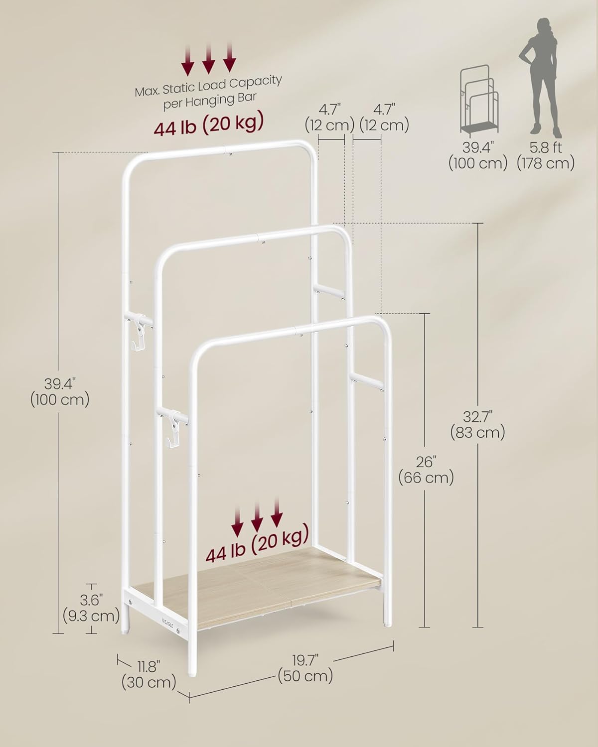 【3-TIER DESIGN】This standing towel rack features 3 bars, allowing you to hang multiple towels and blankets. The highest bar is 100 cm, perfect for large bath towels, keeping them off the floor and away from dust