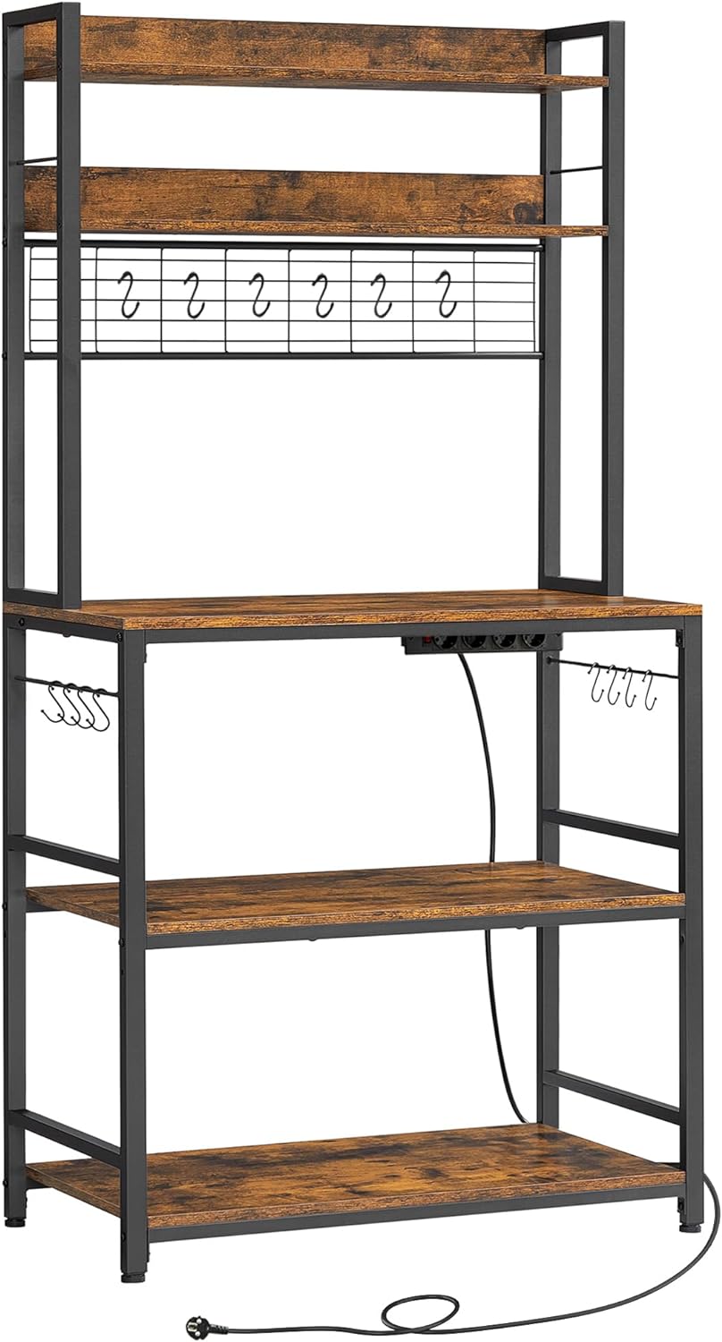 [Spacious] This all-in-one rack with 5 shelves for your microwave, coffee maker, fryer and other appliances, 14 S-shaped hooks for hanging cups or spoons on the grid plate or on the side bars brings order to your kitchen!