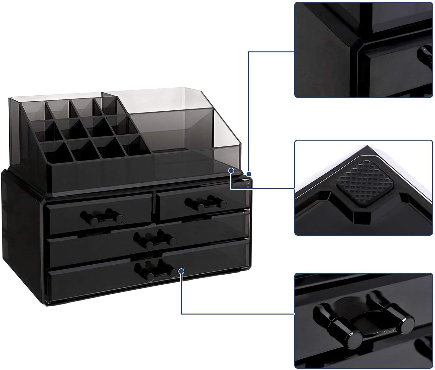 Saves a lot of space: every inch counts in your apartment. The compact cosmetic box with a size of 24 x 13.5 x 18.5 cm takes up little space, but offers you plenty of storage space to store your items neatly