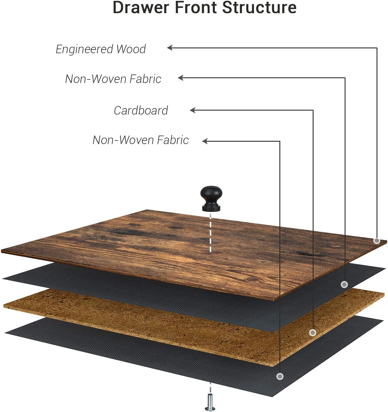 - [Quality Is Counted In] Combining a metal frame, a particleboard top, and MDF drawer front, this storage unit brings the strength of 3 materials into full play, which is stable, durable, and yet lightweight