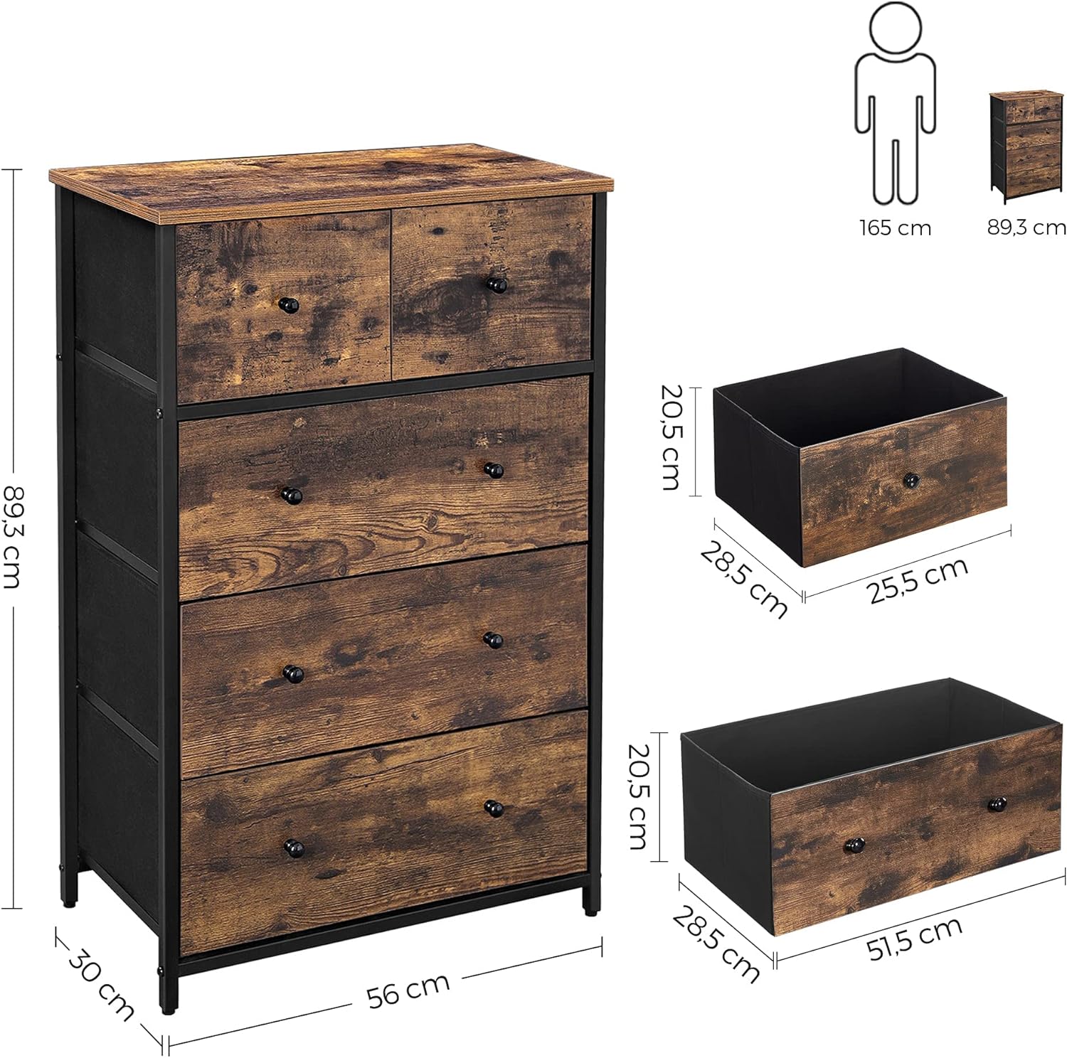 - [What You Get] A storage organiser unit with 5 fabric drawers, 4 adjustable feet for added stability, and 1 Allen key and detailed instructions for easy assembly