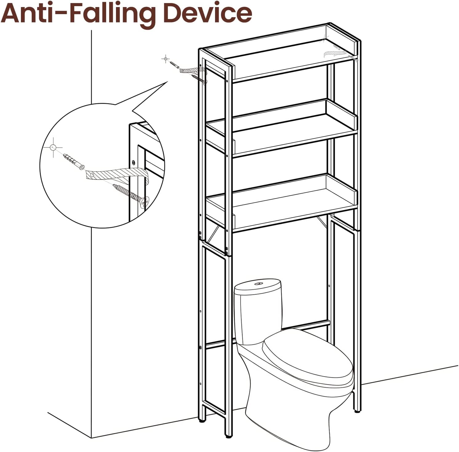 - [Solid, Stable, and Secure] The mix of particleboard and a steel frame gives this bathroom rack a sturdy structure; the anti-tip kit helps ensure the stability, and the raised edges around each shelf prevent items from falling off