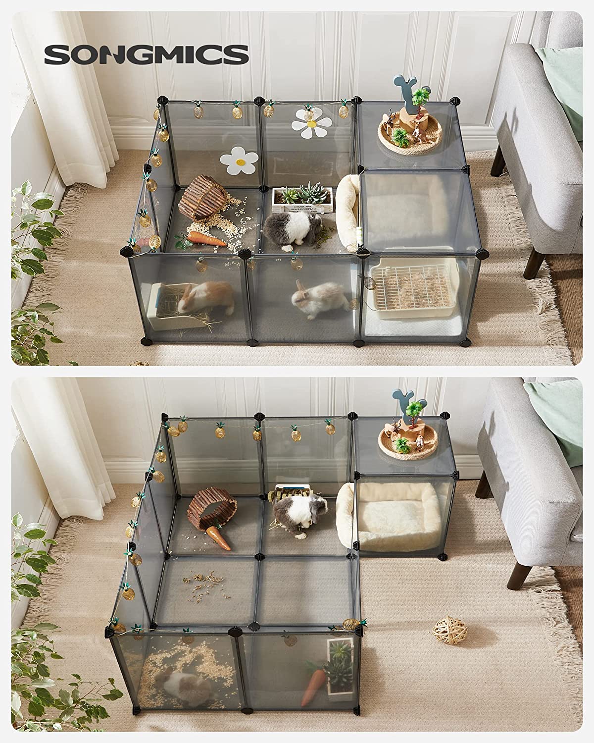 - [Transparent & Easy to Clean] The transparent plastic panels allow you to keep an eye on and interact with your little furry friends; when the guinea pig run gets dirty, just wipe it clean with a damp cloth