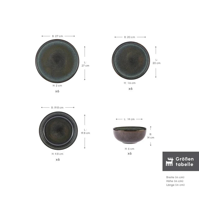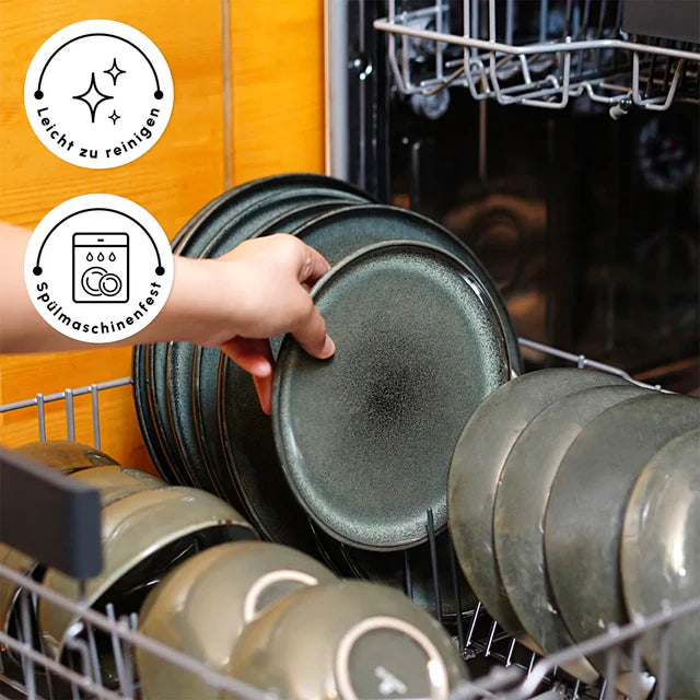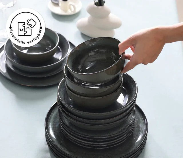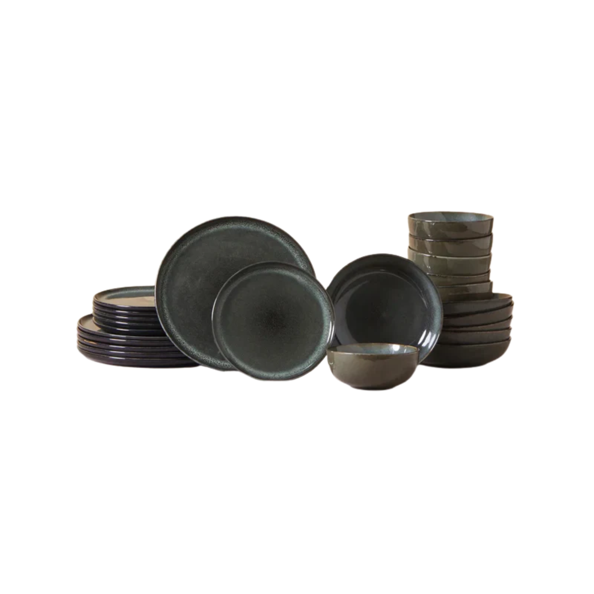 This 24-piece set is designed for 6 people and features a stunning reactive glaze finish that makes each piece uniquely beautiful.