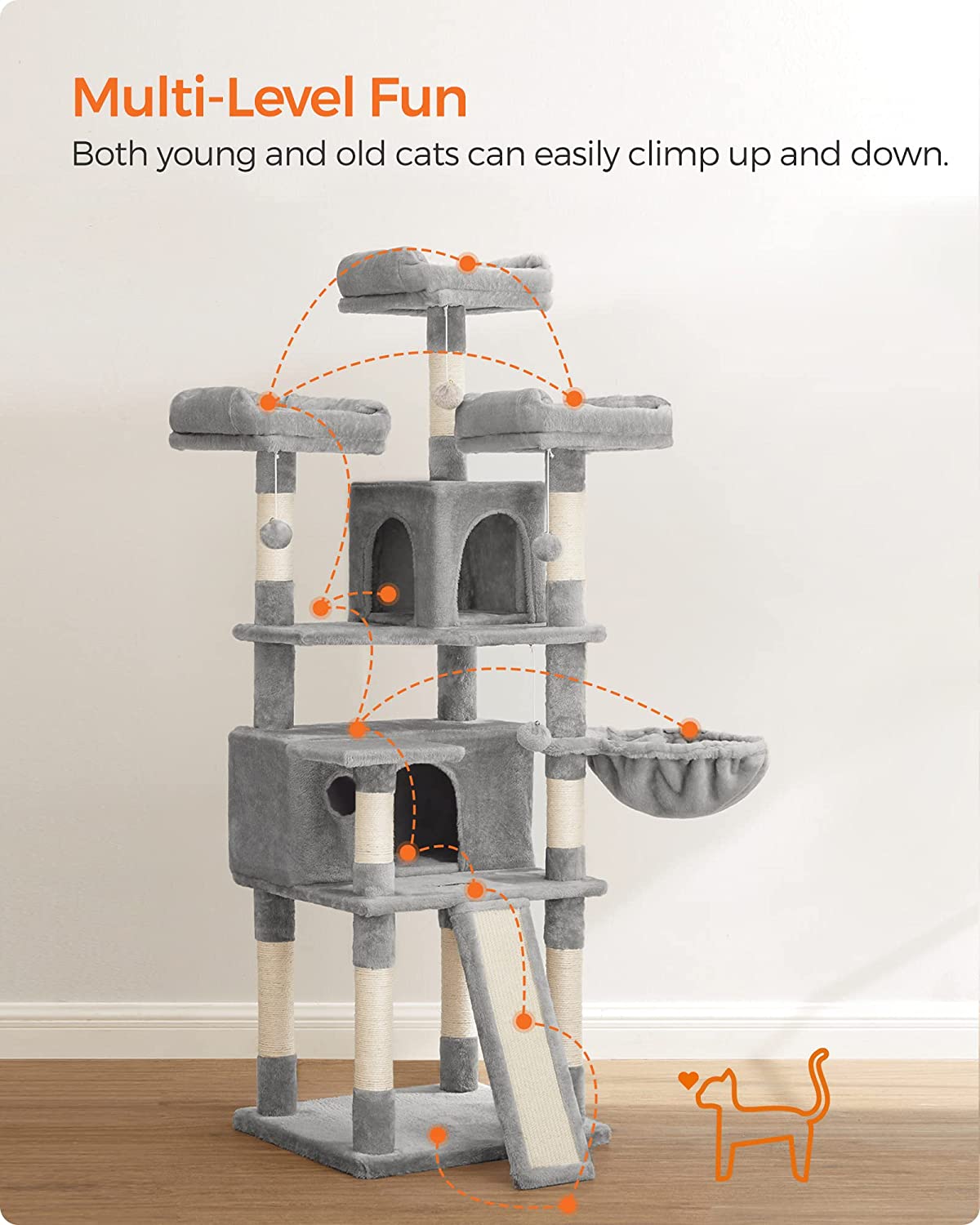 - Special Size: How is this cat tree different? The dimension! With a height of 169cm, it offers an exceptional home for your cats. With a ladder arrangement, both small kittens and older cats can climb like climbing pros