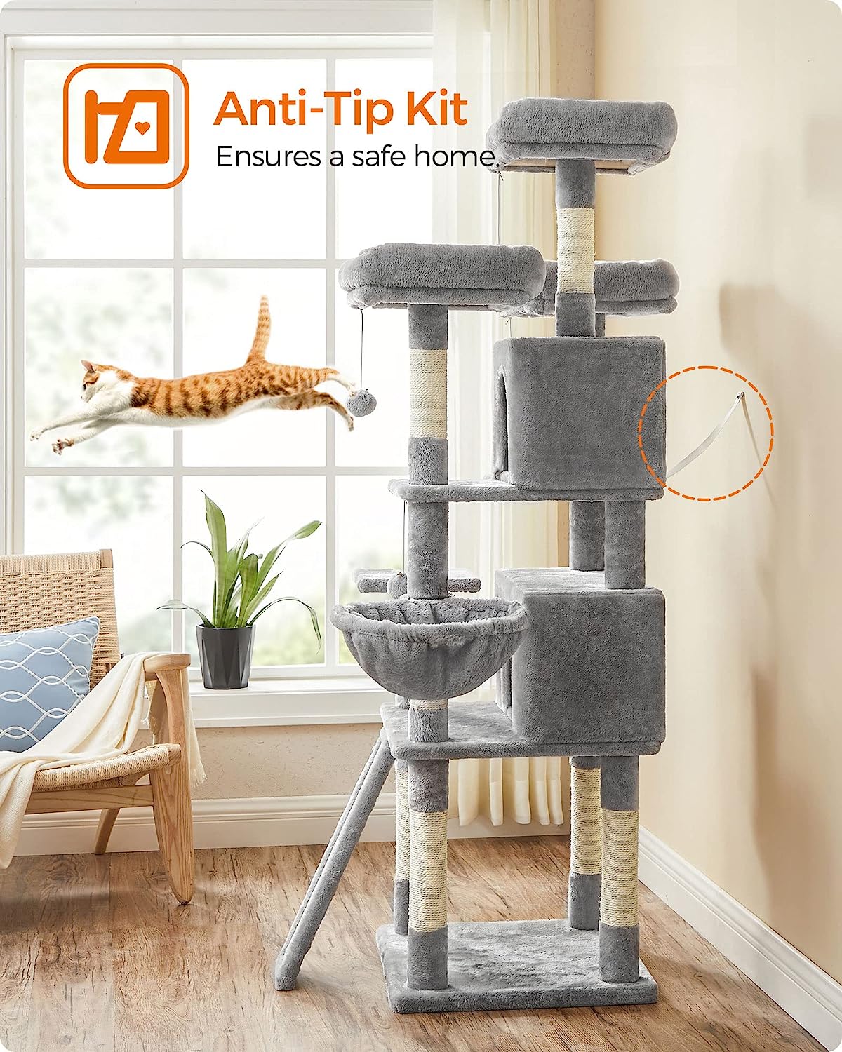 - Fun and safety: Do your cats like to run at full speed? They can do it! With a reinforced base and anti-toppling accessory, this cat tree is always stable, even if 3 cats jump on it