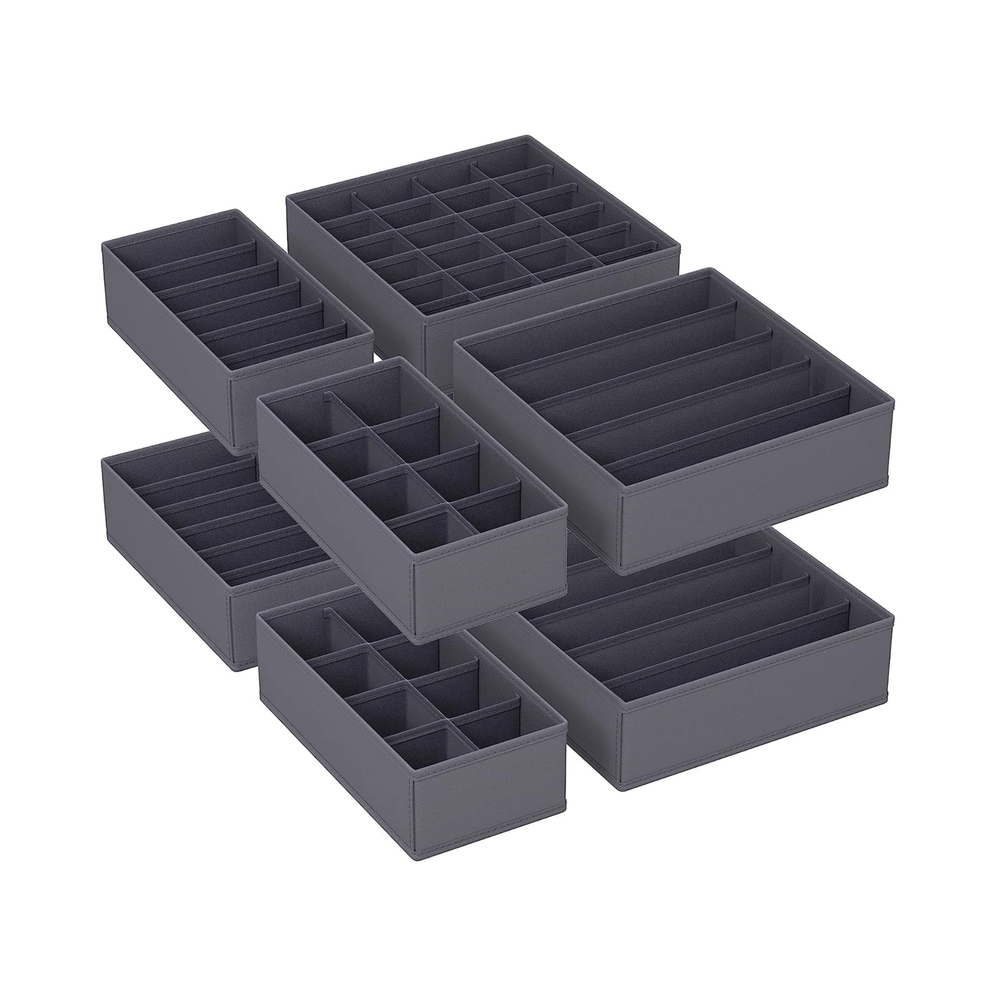 - Wide range of uses: these 8 fabric boxes meet different needs: 2 folding boxes with 5 compartments (32 x 32 x 10 cm) for bras, 2 boxes with 6 compartments (32 x 16 x 10 cm) for scarves or underwear, 2 boxes with 8 compartments (32 x 16 x 10 cm) for ties and 2 boxes with 24 compartments (32 x 32 x 10 cm. cm) for socks or other Accessories.